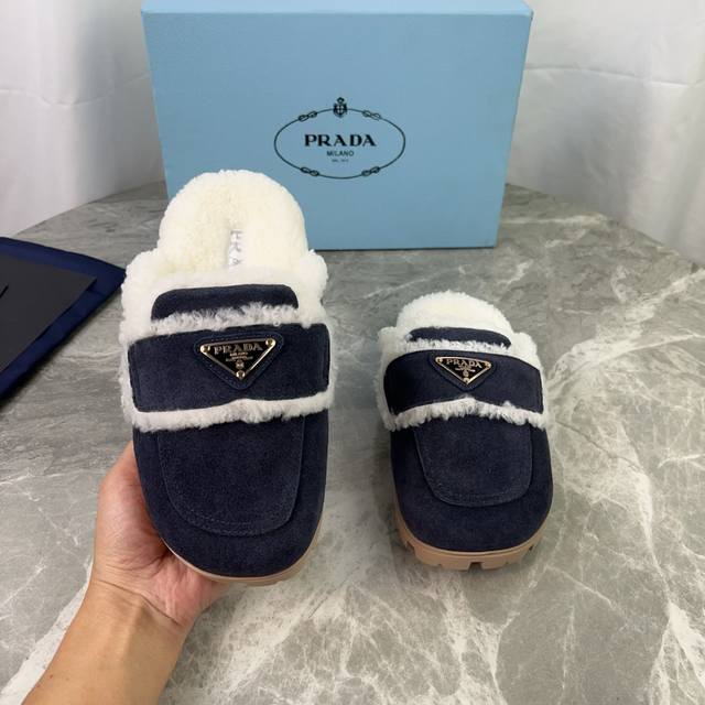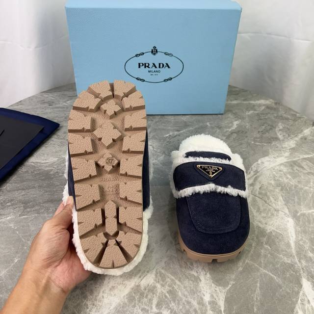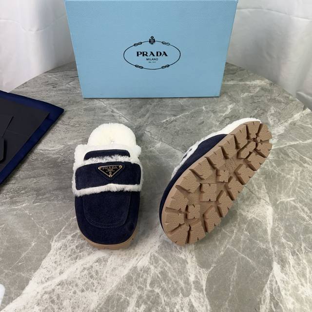 model. Outer: High-gloss cow suede. Lining: Original custom-made genuine wool. Pad: Genuine wool. Sole: Non-slip, wear-resistant patterned rubber outsole. Features the iconic triangle logo and original packaging. Size: 35-41.