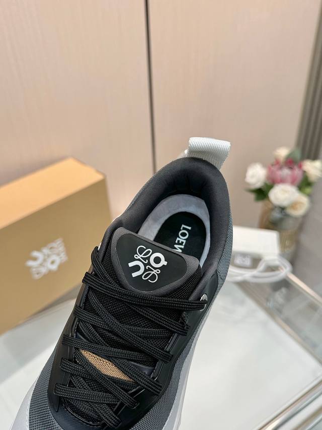 Loewe and On-run's new collaboration is a stylish collaboration. Created in collaboration with Swiss high-performance sports brand On, this collection is designed for both urban and outdoor life, showcasing sustainable, technological quality. Made from recycled polyester and mesh, it features an exclusive sole, the iconic Loewe logo on the side, and fully covered seam detailing. This collaboration combines On's expertise with Loewe's exquisite craftsmanship, applying it to the production and design of these shoes, designed for both urban living and outdoor activities.