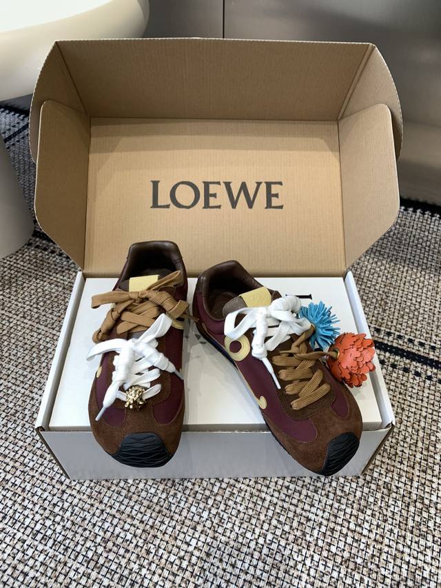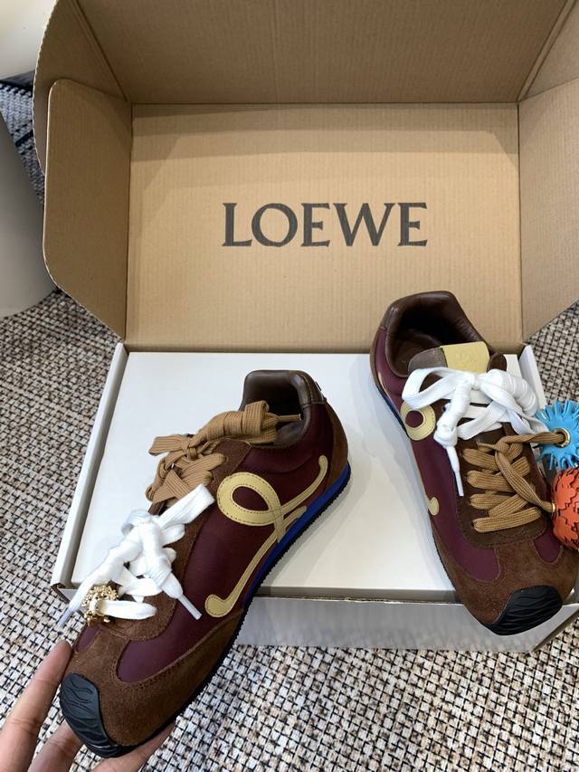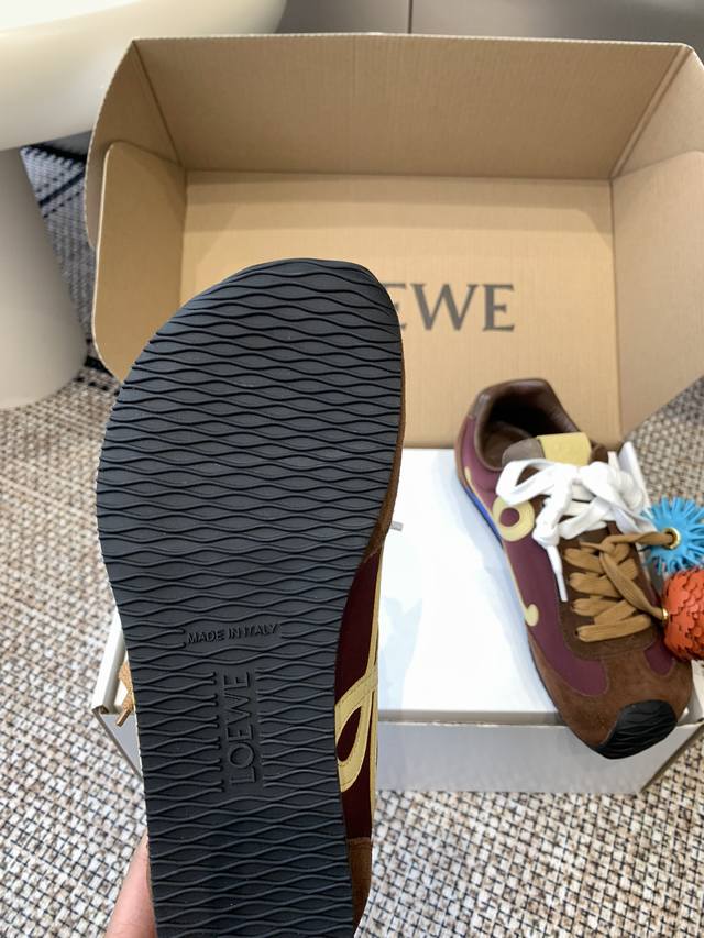 Brand new, original molded accessories! Loewe's latest runway style, the Ballet Runner 2.0, is a couple's choice for ballet casual sneakers in nylon and cowhide leather. Asymmetrical toe cap design, sock-like interior construction, and lightweight rubber outsole extending to the toe. Fabric: custom-made, imported top-grain cowhide. Lining: imported soft sheepskin with mesh. Original molded, non-slip rubber sole. Thickness increased by 2.5cm. Sizes: 35-45 (Women's 40, Men's 45, custom-made).