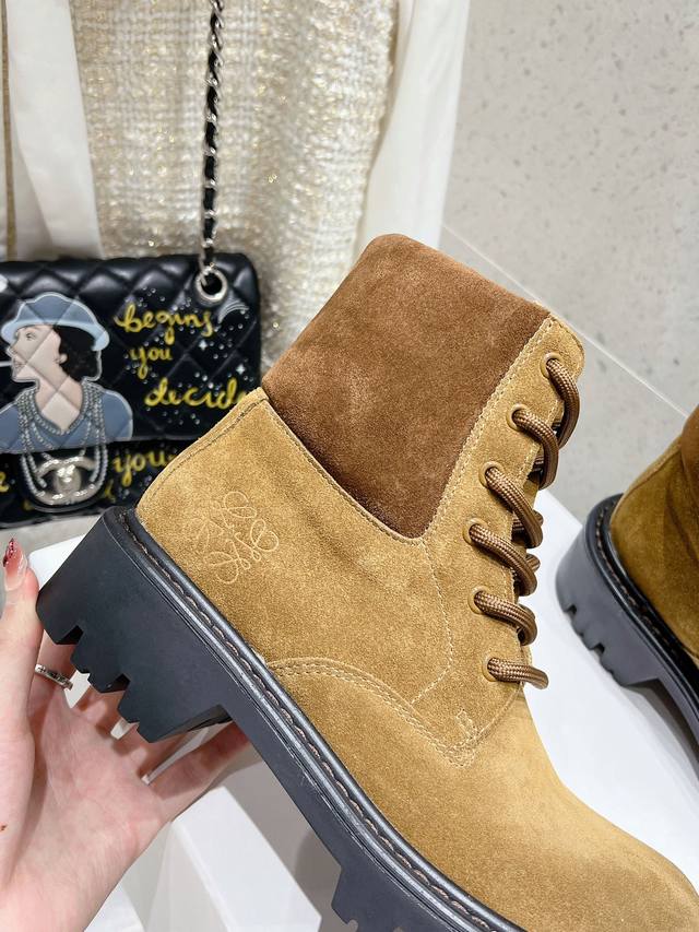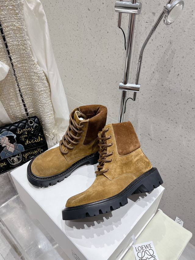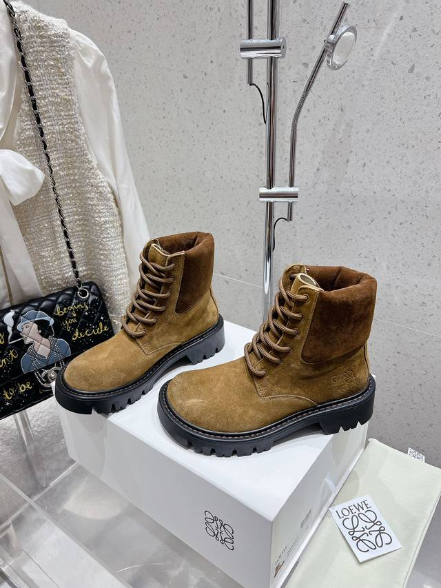 Factory Direct Loewe 24Ss Autumn/Winter New Doll Head Lace-up Martin Boots DDD Simple, stylish, timeless, and classic in the fashion world. The retro British style lets you exude a unique charm. Original last, complete with boutique packaging! DDD Material: Imported suede Lining: Sheepskin lining Outsole: Original mold, wear-resistant, ultra-lightweight outsole DDD Sizes: Women's 35-39, 40 (made-to-order, no returns or exchanges) DDD