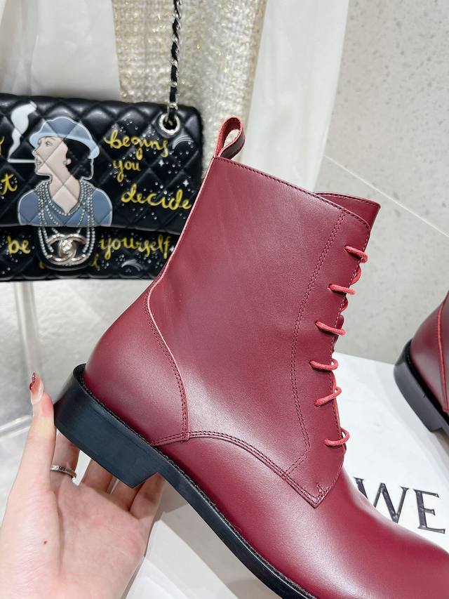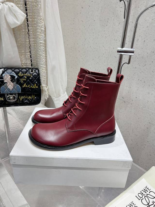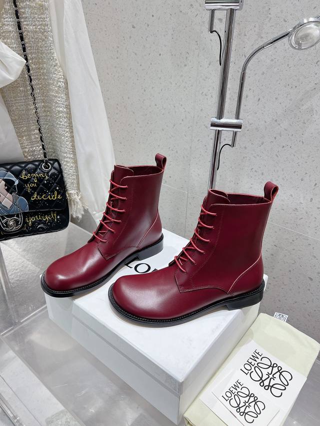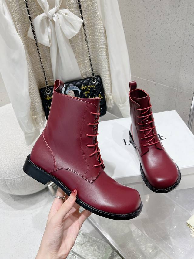 Factory Direct Loewe Autumn/Winter New Lace-up Round Toe Cowhide Flat Fashion Boots/Ankle Boots. Simple, stylish, timeless, and a classic that never goes out of fashion. Retro British style. Gives you a unique look. Original last, complete with boutique packaging! Material: Cowhide upper. Lining: Cowhide lining. Size: 35-39. Size 40 is custom-made and non-refundable.