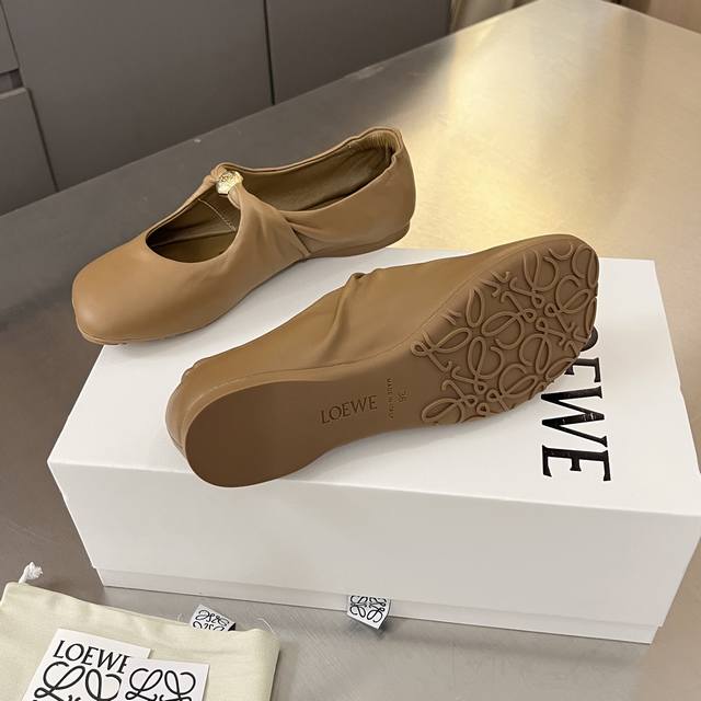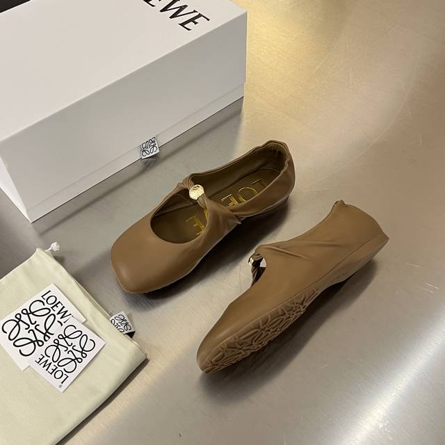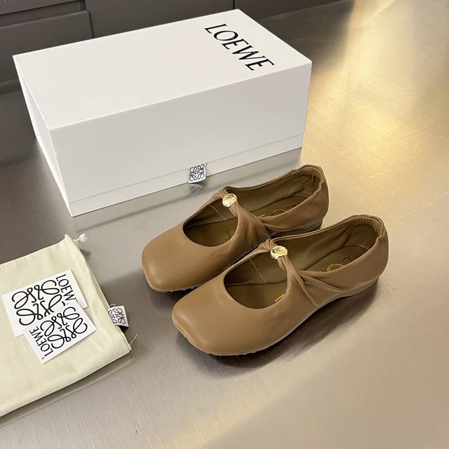 Loeve 2025 summer new super soft Nappa sheepskin pebble ballet flats