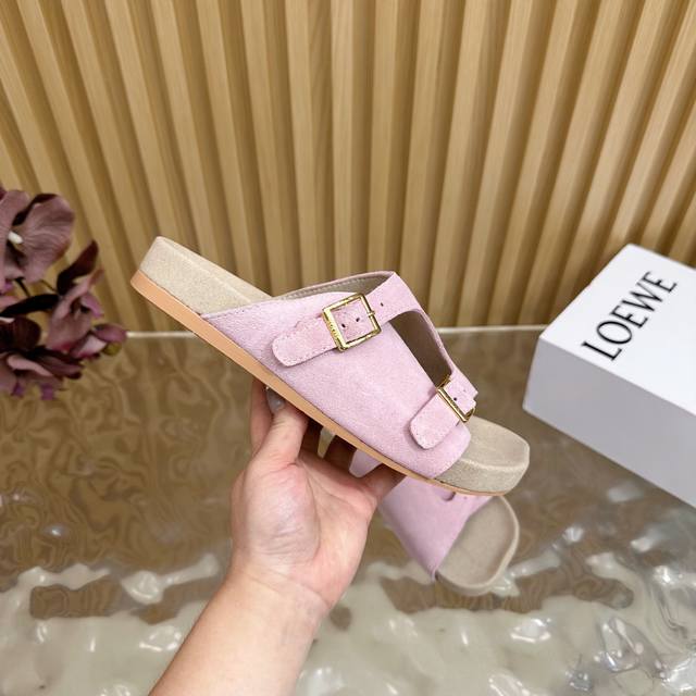High-end version of Loewe's new square-toed Birkenstock half-slippers