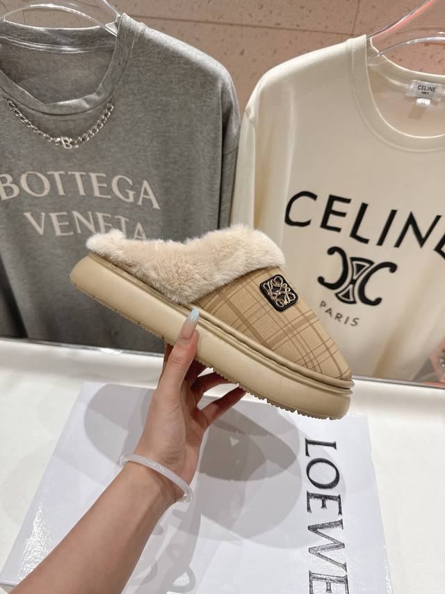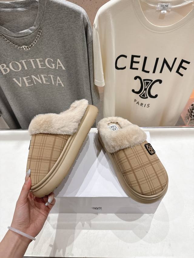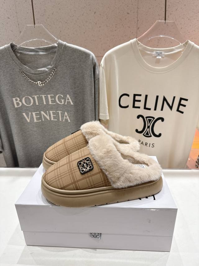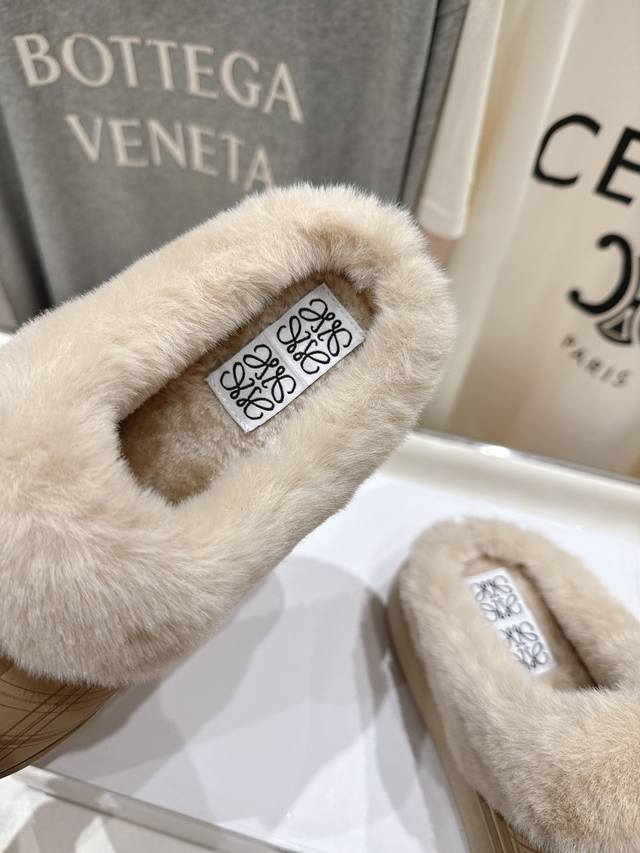 High-quality factory-made Loewe F036 2025 Autumn/Winter hot new style, super recognizable cute furry slippers, simple and stylish design, with the original last shape, fashionable, comfortable and easy to wear. Material: Original imported fabric. Insole: Eco-friendly woven wool. Outsole: Original outsole. Sizes: 35-40. Size 40 is custom-made and non-refundable.
