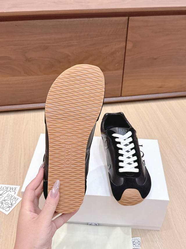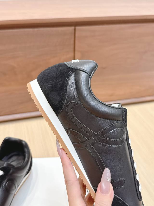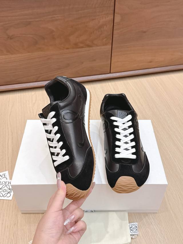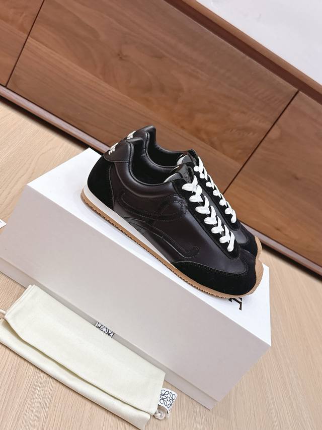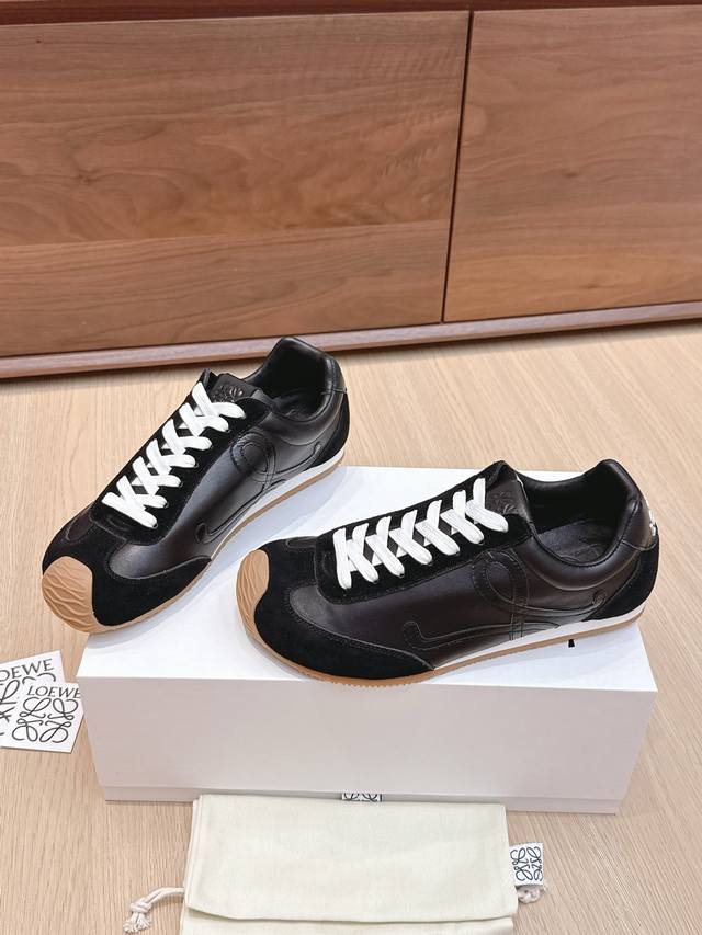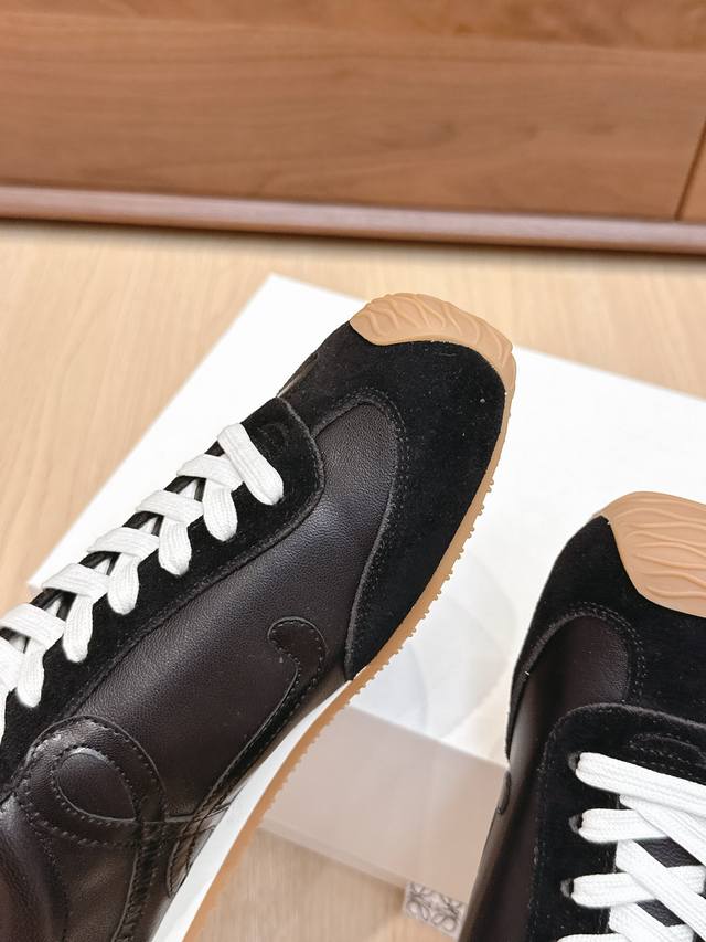 High-quality Loewe Ballet Runner 2.0 sneakers, featuring a more playful toe design and a novel, soft, and comfortable heel. These sneakers are hailed as the most comfortable walking shoes of the year, making walking feel like walking on flat ground! Sneakers recommended to be true to size. The shoes have a simple and clean low-top design, with the brand logo's initials on the side. Most importantly, once you wear these shoes, you'll fall in love and won't want to choose any other athletic shoes. Material description: The upper is made of imported cow suede, calfskin, and windbreaker fabric, requiring skilled stitching. Original custom molded outsole! Comes with complete packaging. Comfortable, simple, and versatile Loewe Ballet Runner 2.0, inspired by ballet shoes and 1970s footwear, with a touch of retro style! Original box packaging! Size: 35-45M