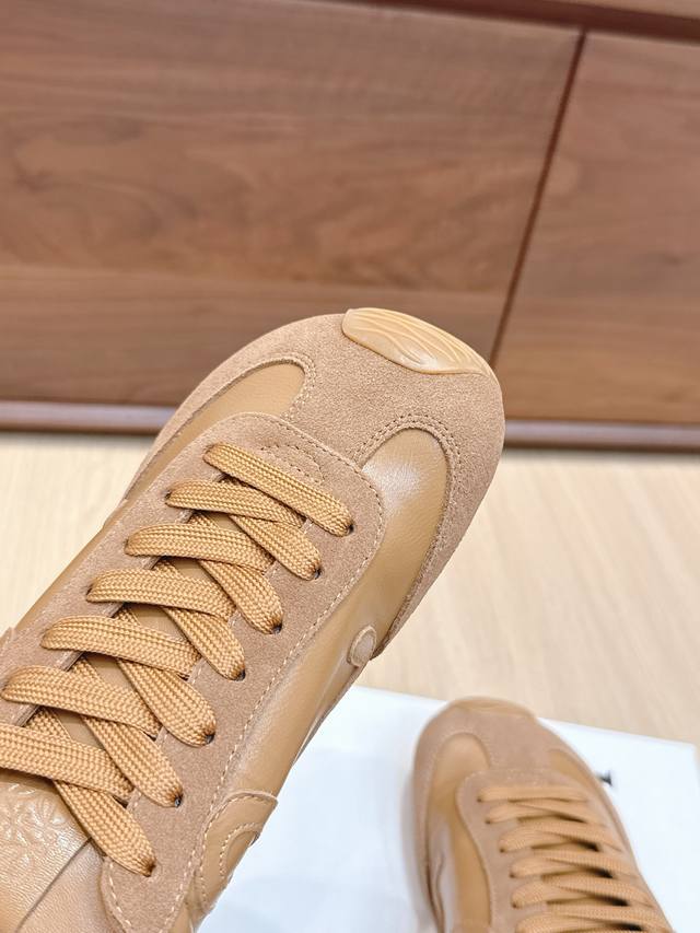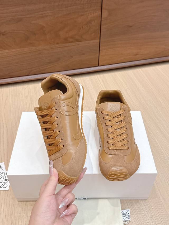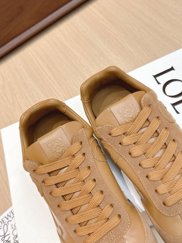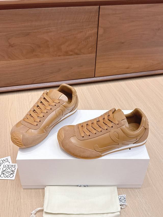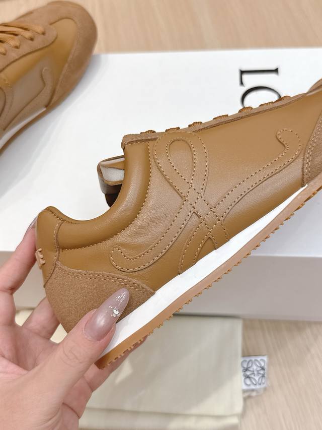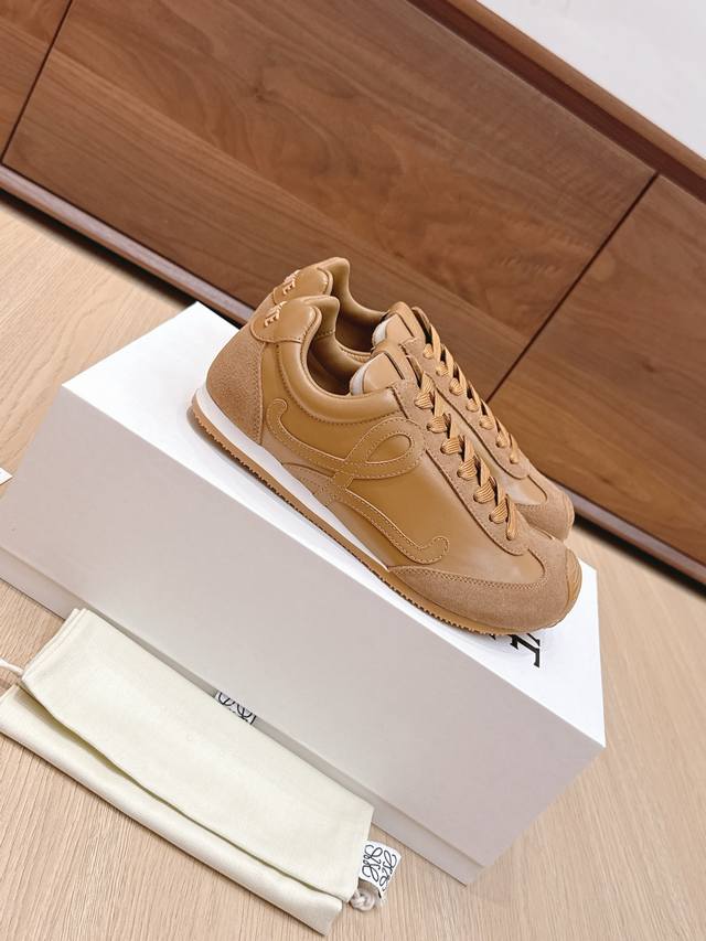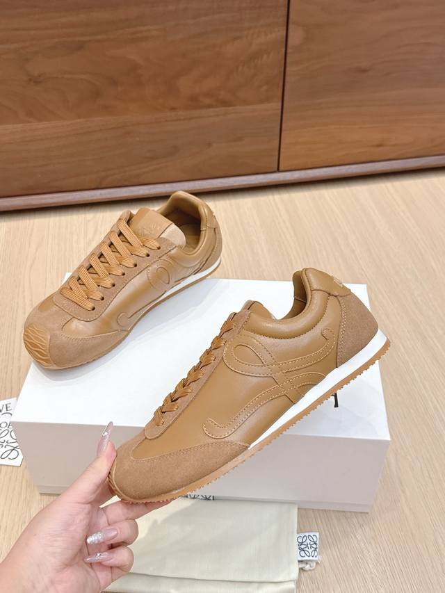High-quality Loewe Ballet Runner 2.0 sneakers, featuring a more playful toe design and a novel, soft, and comfortable heel. These sneakers are hailed as the most comfortable walking shoes of the year, making walking feel like walking on flat ground! Sneakers recommended to be true to size. The shoes have a simple and clean low-top design, with the brand logo's initials on the side. Most importantly, once you wear these shoes, you'll fall in love and won't want to choose any other athletic shoes. Material description: The upper is made of imported cow suede, calfskin, and windbreaker fabric, requiring skilled stitching. Original custom molded outsole! Comes with complete packaging. Comfortable, simple, and versatile Loewe Ballet Runner 2.0, inspired by ballet shoes and 1970s footwear, with a touch of retro style! Original box packaging! Size: 35-45M