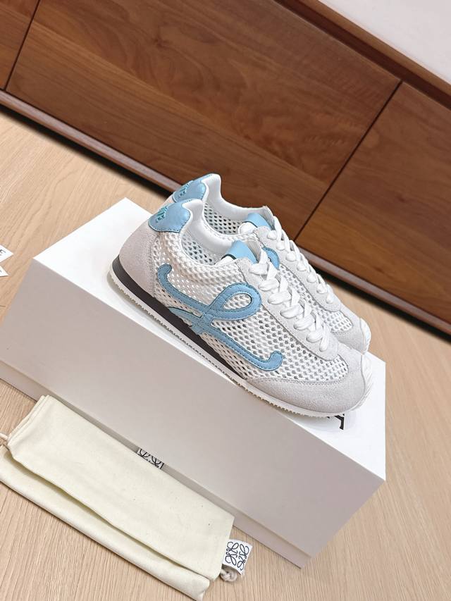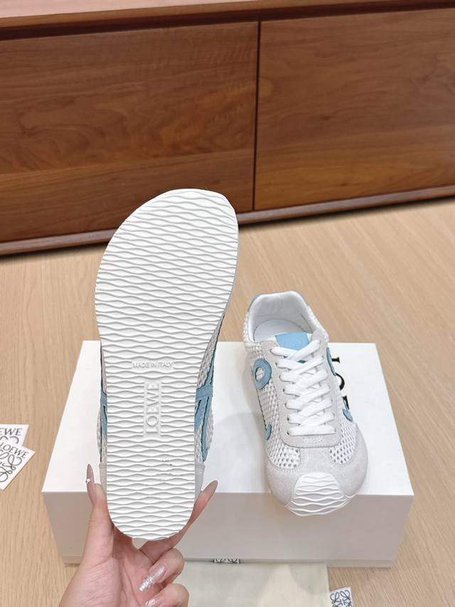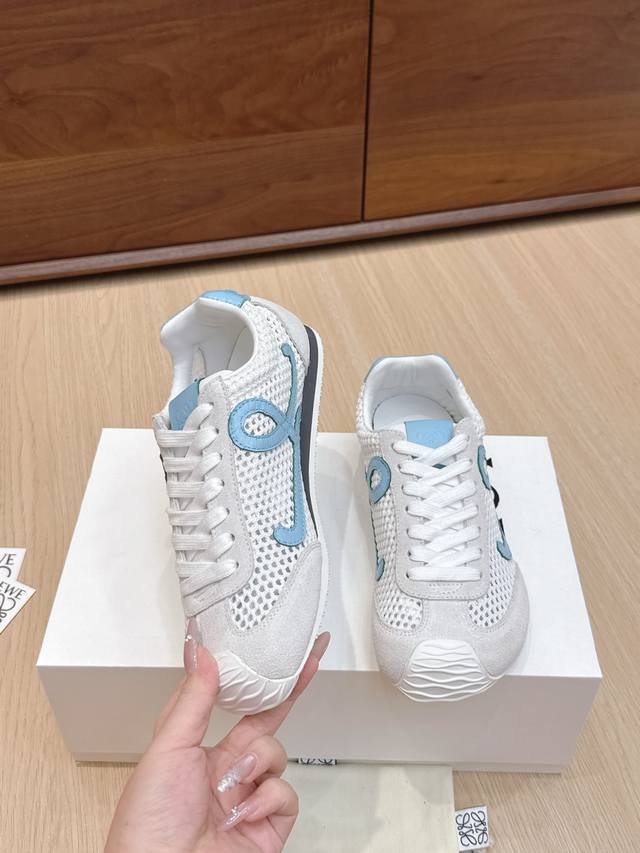 High-quality Loewe Ballet Runner 2.0 sneakers, featuring a more playful toe design and a novel, soft, and comfortable heel. These sneakers are hailed as the most comfortable walking shoes of the year, making walking feel like walking on flat ground! Sneakers recommended to be true to size. The shoes have a simple and clean low-top design, with the brand logo's initials on the side. Most importantly, once you wear these shoes, you'll fall in love and won't want to choose any other athletic shoes. Material description: The upper is made of imported cow suede, calfskin, and windbreaker fabric, requiring skilled stitching. Original custom molded outsole! Comes with complete packaging. Comfortable, simple, and versatile Loewe Ballet Runner 2.0, inspired by ballet shoes and 1970s footwear, with a touch of retro style! Original box packaging! Size: 35-45M