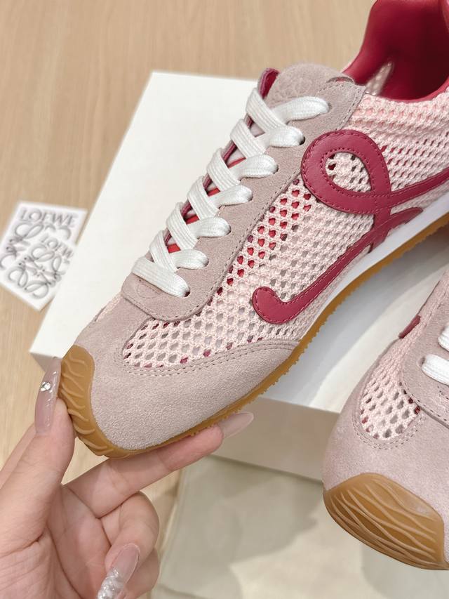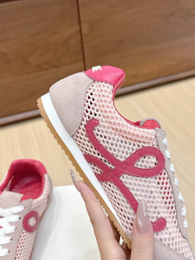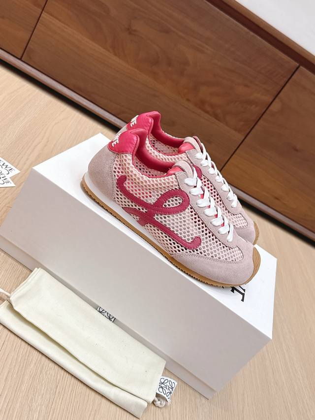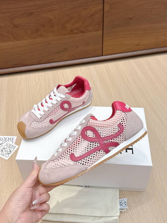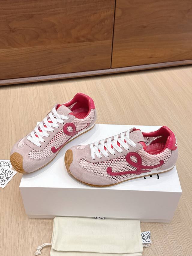 High-quality Loewe Ballet Runner 2.0 sneakers, featuring a more playful toe design and a novel, soft, and comfortable heel. These sneakers are hailed as the most comfortable walking shoes of the year, making walking feel like walking on flat ground! Sneakers recommended to be true to size. The shoes have a simple and clean low-top design, with the brand logo's initials on the side. Most importantly, once you wear these shoes, you'll fall in love and won't want to choose any other athletic shoes. Material description: The upper is made of imported cow suede, calfskin, and windbreaker fabric, requiring skilled stitching. Original custom molded outsole! Comes with complete packaging. Comfortable, simple, and versatile Loewe Ballet Runner 2.0, inspired by ballet shoes and 1970s footwear, with a touch of retro style! Original box packaging! Size: 35-45M