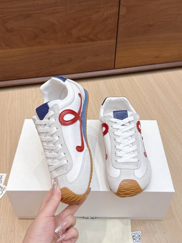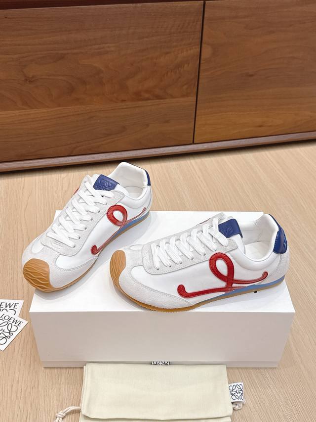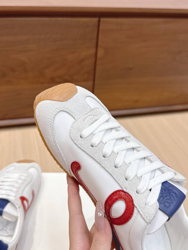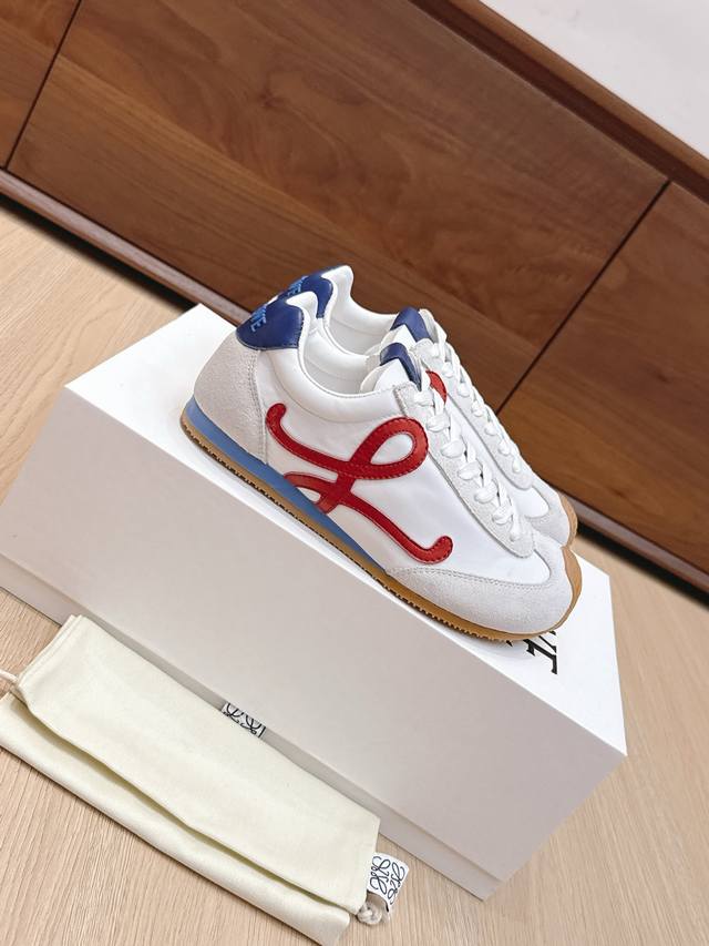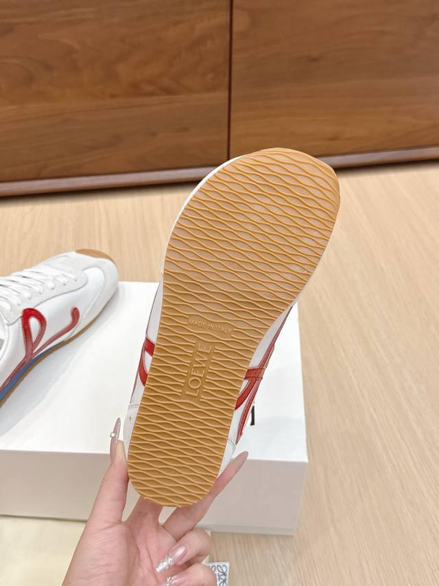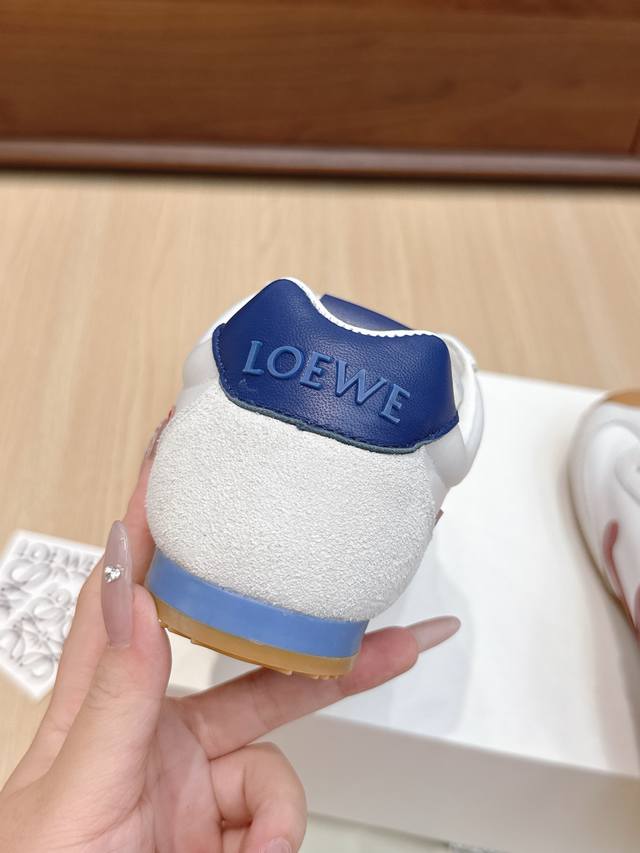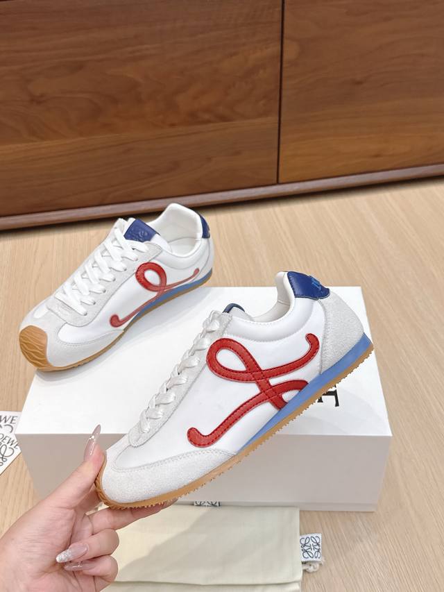 High-quality Loewe Ballet Runner 2.0 sneakers, featuring a more playful toe design and a novel, soft, and comfortable heel. These sneakers are hailed as the most comfortable walking shoes of the year, making walking feel like walking on flat ground! Sneakers recommended to be true to size. The shoes have a simple and clean low-top design, with the brand logo's initials on the side. Most importantly, once you wear these shoes, you'll fall in love and won't want to choose any other athletic shoes. Material description: The upper is made of imported cow suede, calfskin, and windbreaker fabric, requiring skilled stitching. Original custom molded outsole! Comes with complete packaging. Comfortable, simple, and versatile Loewe Ballet Runner 2.0, inspired by ballet shoes and 1970s footwear, with a touch of retro style! Original box packaging! Size: 35-45M