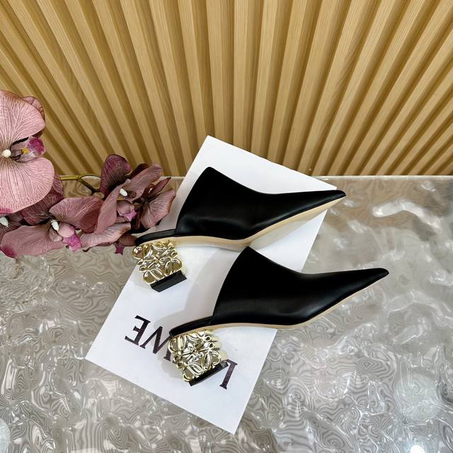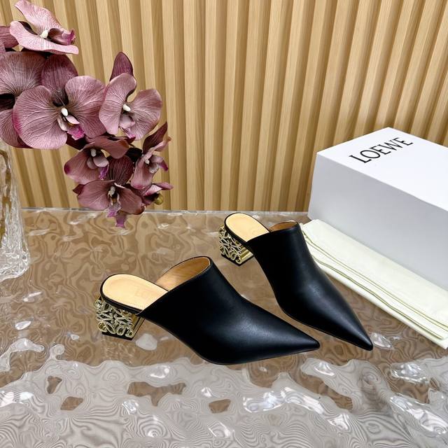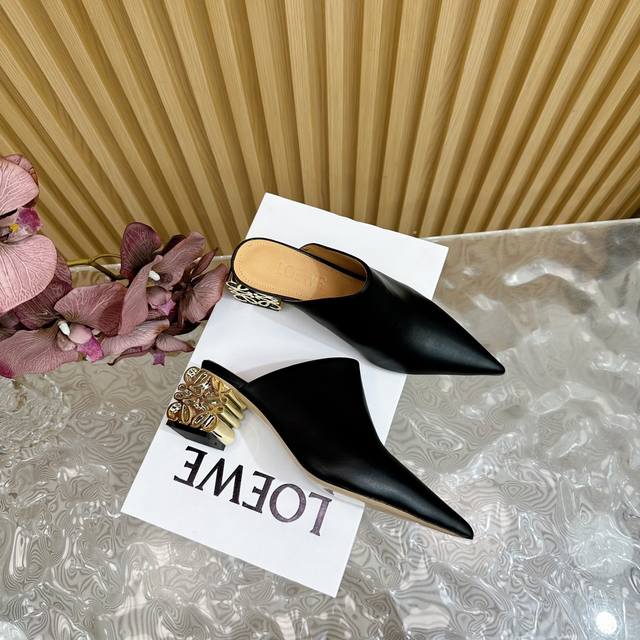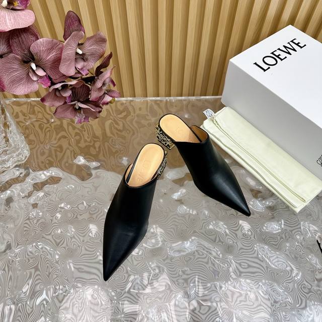 High-quality Loewe new square-heeled pointed-toe mid-heel mule slippers DDD These elegant and sophisticated slippers exude a high-end feel. The stylish pointed-toe design enhances your presence. The new pearl-embellished logo paired with a single strap and open heel adds a touch of "ceremony" rather than casualness. DDD The open heel design makes them easy to put on and take off, perfect for hot summer days. The 4.5cm kitten heel is just right, stable and comfortable to walk in, elongating the leg line and exuding femininity. DDD Whether for work, everyday wear, dates, or shopping, these slippers are versatile and stylish. DDD Material: Cowhide DDD Lining: Sheepskin DDD Outsole: Genuine Leather DDD Heel Height: 4.5cm DDD Sizes: 35, 41, 40, 41 (custom sizes available) DDD