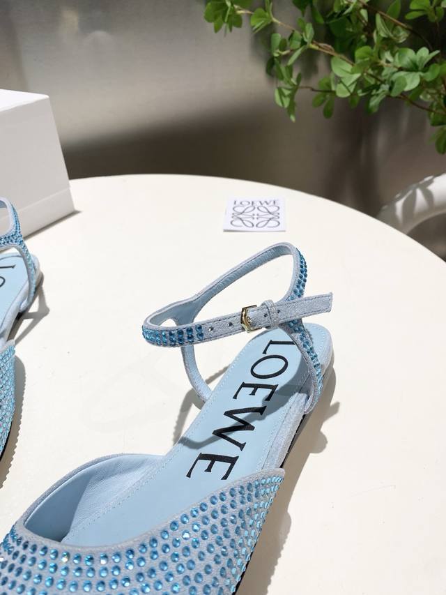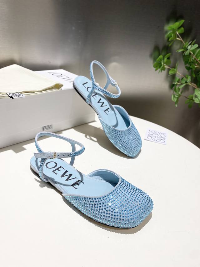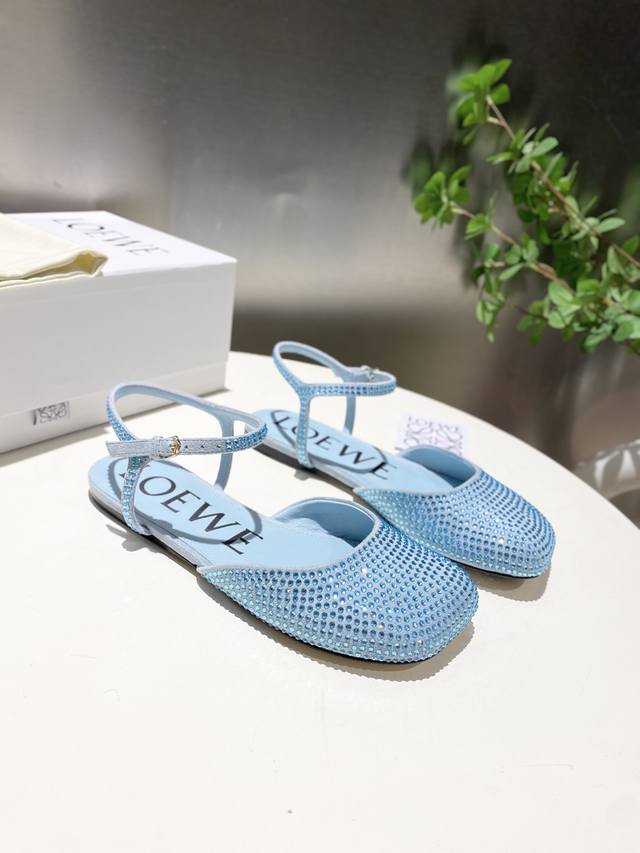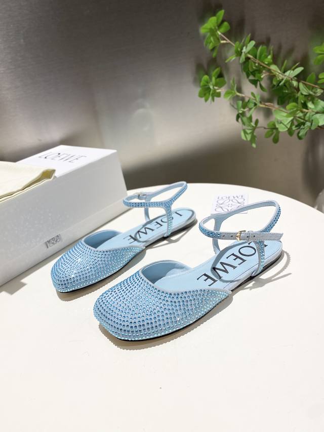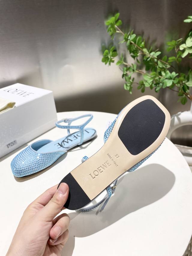 High-quality, rhinestone-embellished design. Latest Loewe summer limited edition slippers, featuring the hottest spring/summer colors. Truly casual and stylish flat dance shoes with a subtle, alluring look. Made of delicate imported calfskin, the leather feels like a baby's skin to the touch, almost like you're not wearing anything at all. Super light, super soft, and super comfortable! They look absolutely gorgeous on your feet! Highly recommended! Super fashionable, the most dazzling style in Paris, the same style worn by celebrities and bloggers! Material: Imported calfskin in black, white, yellow, khaki, and burgundy (five colors), rhinestone finish in black, blue, and green. Lining: Imported sheepskin. Heel height: 1cm. Outsole: Original genuine leather outsole. Sizes: 35-39, 34, 40, 41, 42, 43. Custom sizes available.