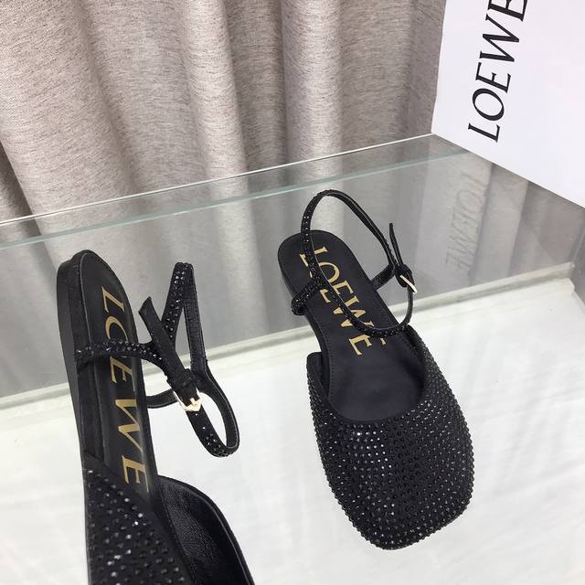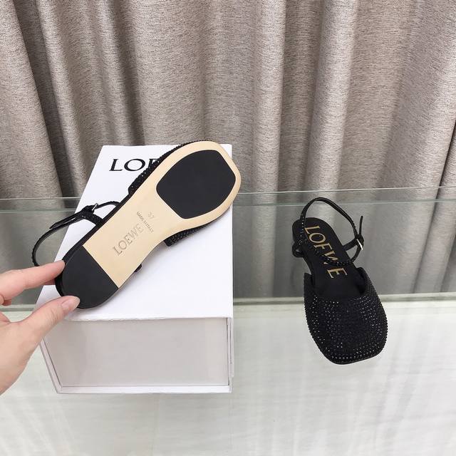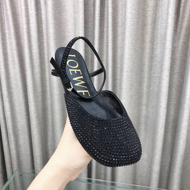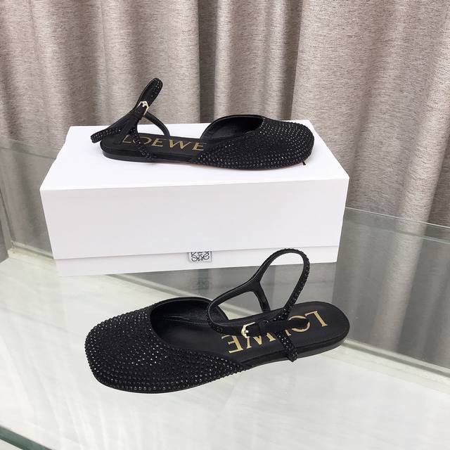 Leather Rhinestone Slippers - The latest Loewe 25 Ss summer limited edition slippers, featuring the hottest spring/summer colors. Truly casual and stylish flat dance shoes with a subtly alluring look. Made of delicate imported calfskin, the surface feels like a baby's skin, almost like you're not wearing anything at all. Super light, super soft, and super comfortable! They look absolutely gorgeous on your feet! Highly recommended! Super fashionable and dazzling in Paris, the same style worn by celebrities and bloggers! Material: Imported calfskin in black, white, yellow, and burgundy (four colors); rhinestone finish in black, blue, and green (three colors). Lining: Imported sheepskin. Heel height: 1cm. Outsole: Original genuine leather outsole. Sizes: 35-39, 34, 40, 41, 42, 43. Custom sizes available.