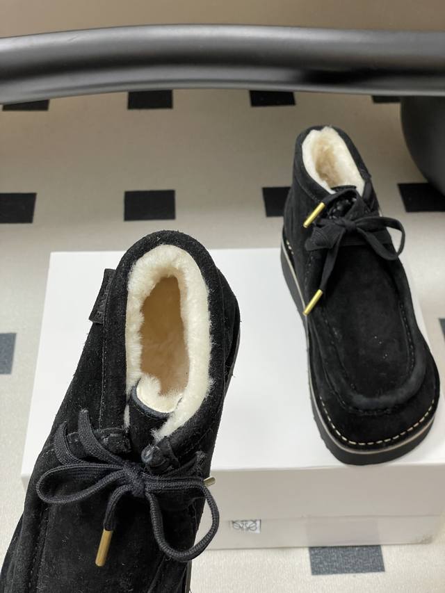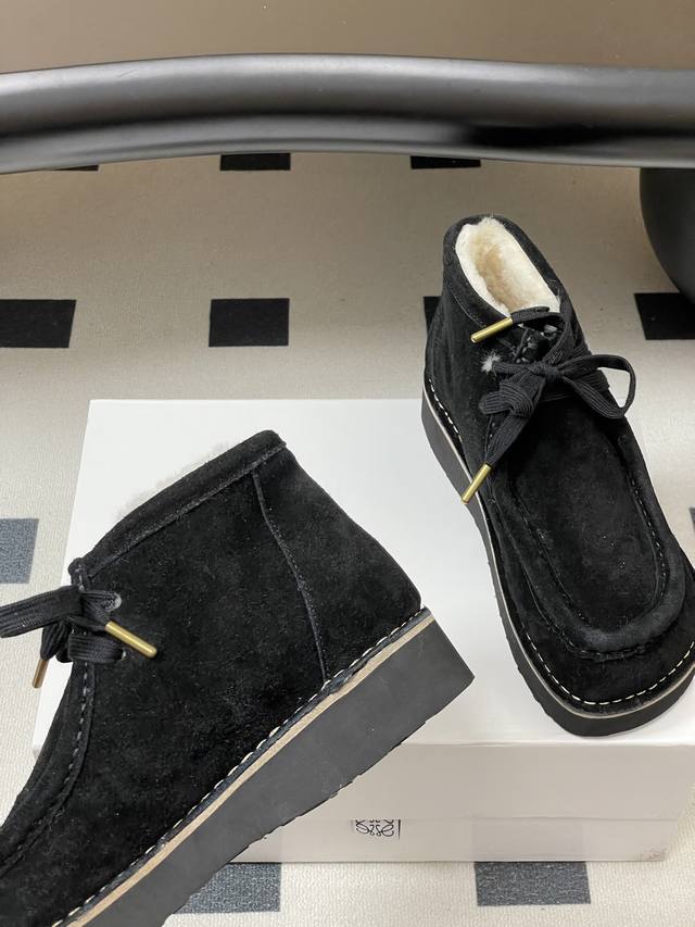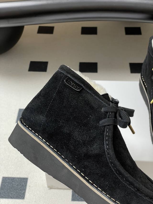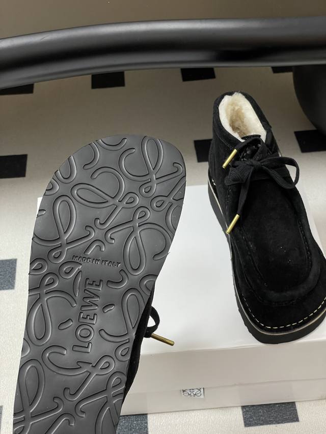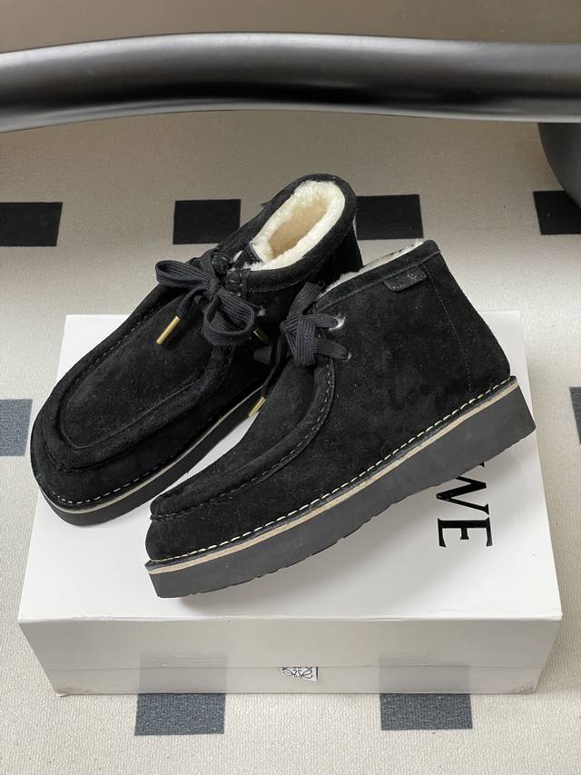 Loewe 2025 Autumn/Winter New Style Wool-lined Derby Shoes, Round Toe Loafers, Retro Suede Thick Sole Wool Ankle Boots DDD These suede round-toe derby shoes feature a wide moccasin toe structure, suede trim, a leather logo label on the side of the heel, a top-grain cowhide insole, and a lightweight rubber outsole for excellent comfort and versatility with straight-leg pants. DDD The round toe is cute and versatile; the heel can be folded down to resemble a British-style sandal, making them easy to match with various outfits. They are incredibly soft and comfortable on the feet! DDD Upper: Cowhide Suede DDD Insole: Wool DDD Outsole: Genuine leather midsole with ultra-lightweight foam outsole DDD Sizes: Women's 35-39, 40, 41, 42 (Made to order, no returns or exchanges) DDD Men's 40-44, 45 (Made to order, no returns or exchanges) DDD