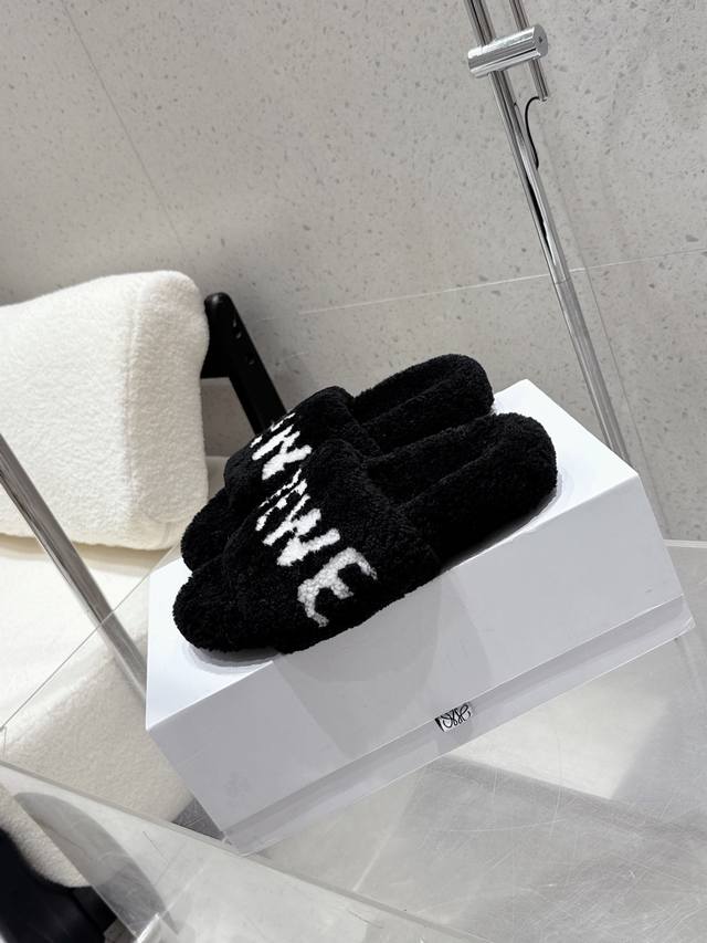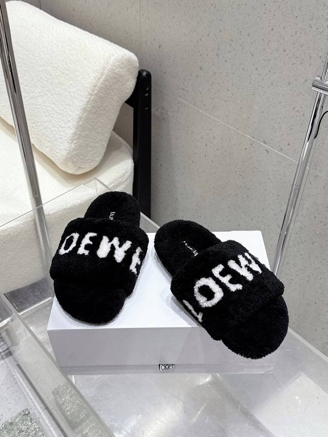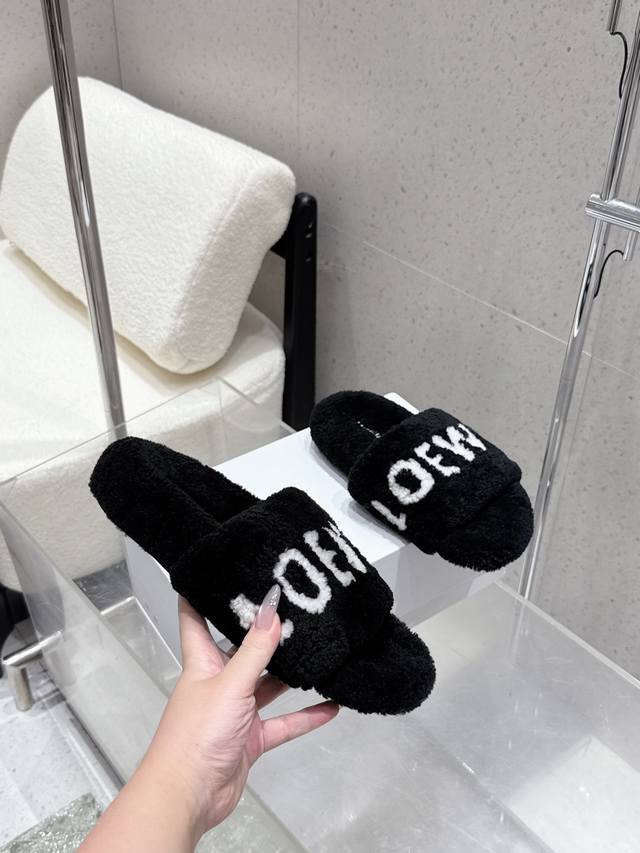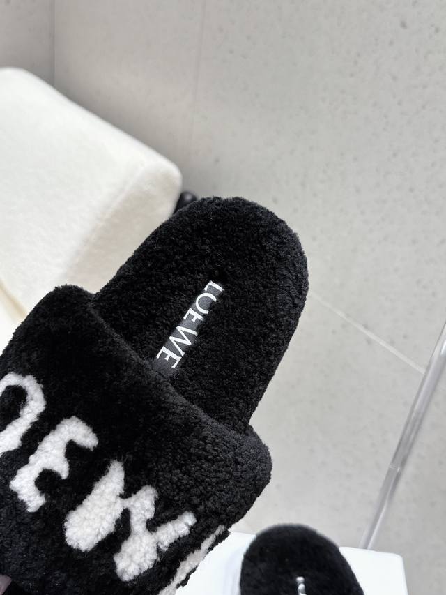 Loewe 2025 New Autumn/Winter Letter Furry Slippers