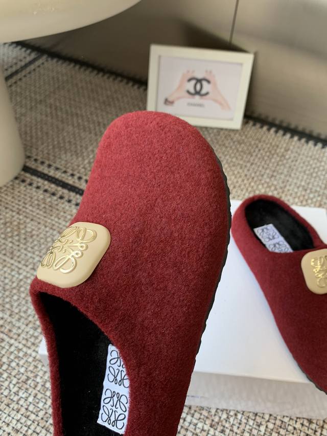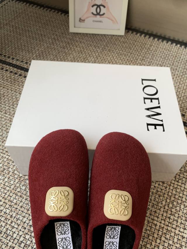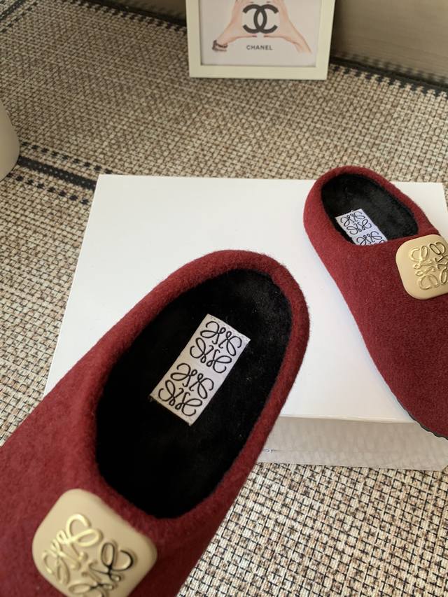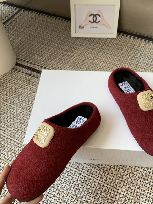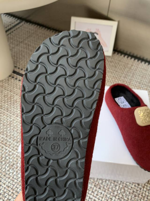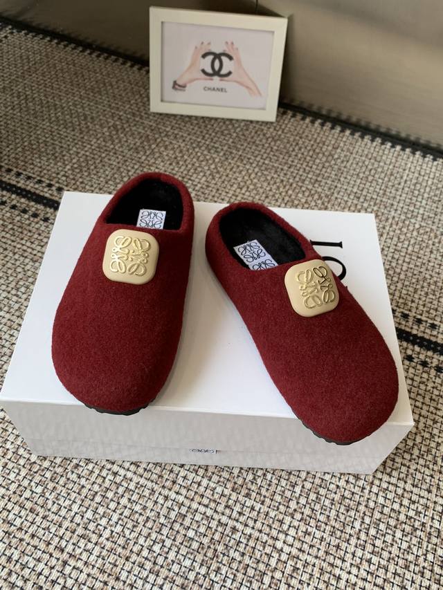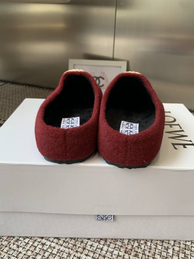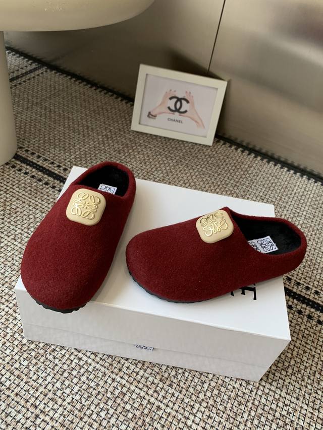 Loewe 25Ss Autumn New Style Fleece Slippers Ease Three-Petal Toe Full Leather Wrapped Birken Shoes