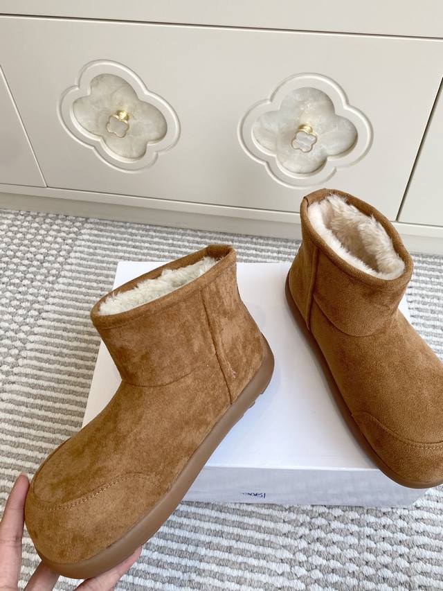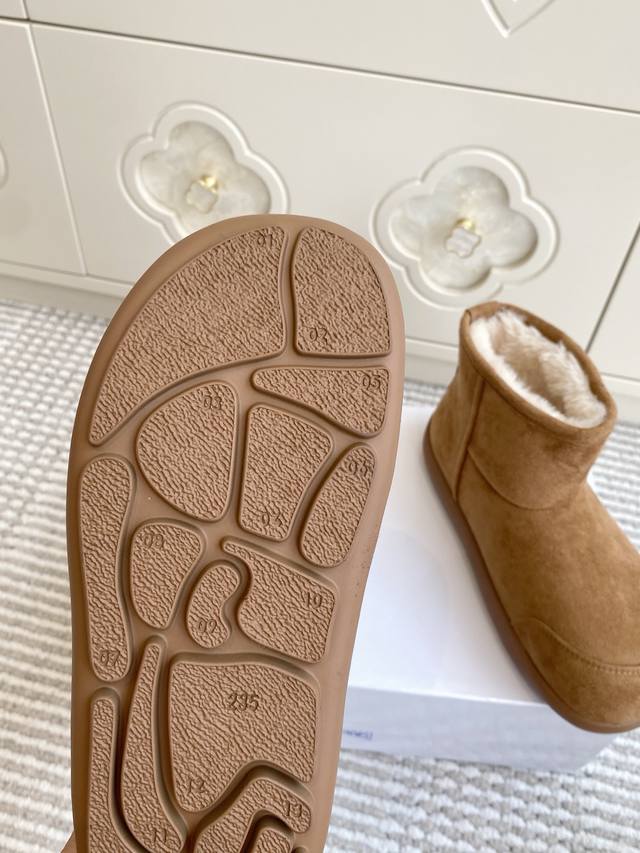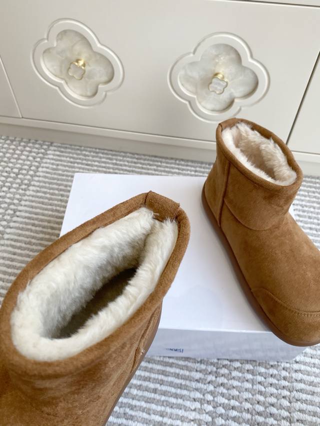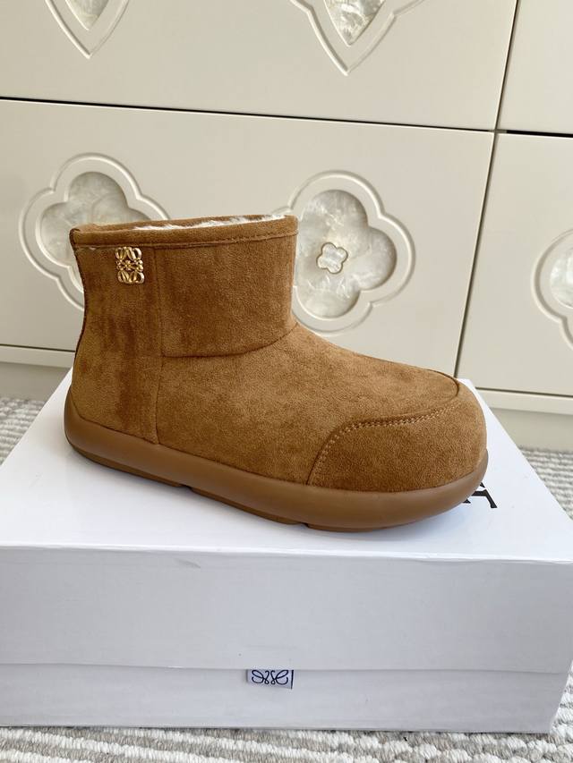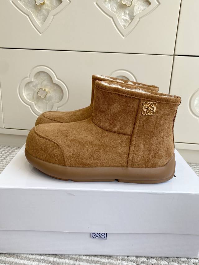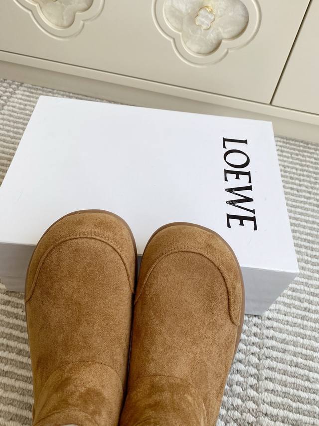 Loewe Shearling Boots I always say, only Loewe can provide such warmth, lightness, and softness. The shearling material is lightweight and soft, and the suede finish gives it a suede-like texture while being extremely durable. A timeless classic from Loewe, the feel is simply unbeatable. The warmth is unparalleled; you'll understand once you put them on.