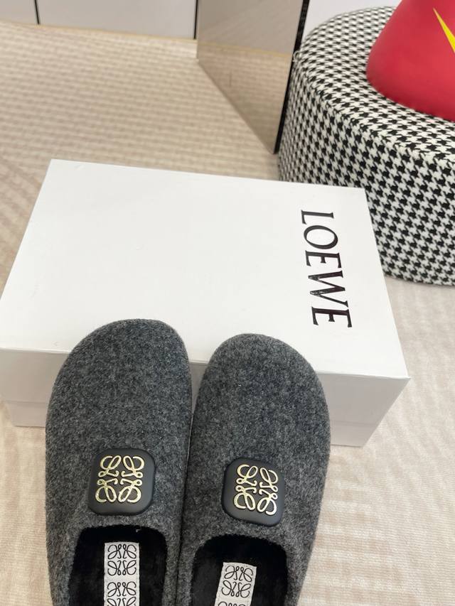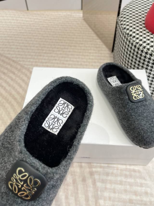 Loewe 25Ss new autumn wool slippers Ease three-petal toe full leather wrapped Birkenstock