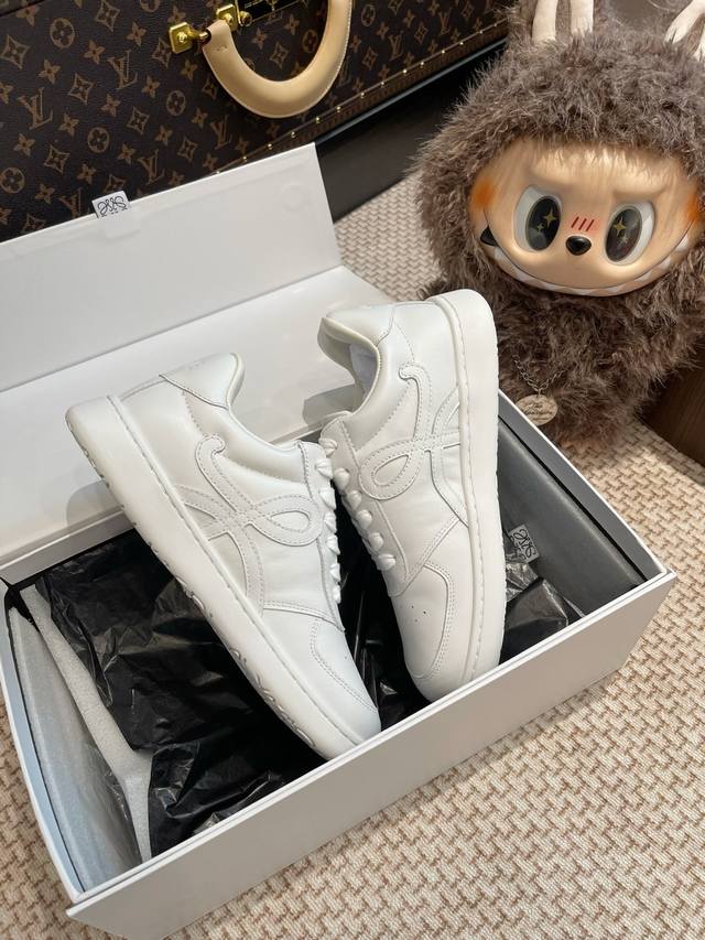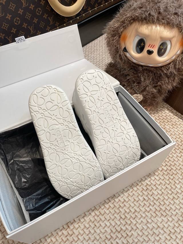 Loewe leather casual shoes. The entire shoe is sourced from the original and developed using custom materials. It features an exclusive molded outsole, and all details are identical to the original. Even the packaging is the same as the authentic product. Sizes: Women's 35-40, Men's 39-44.