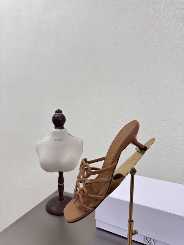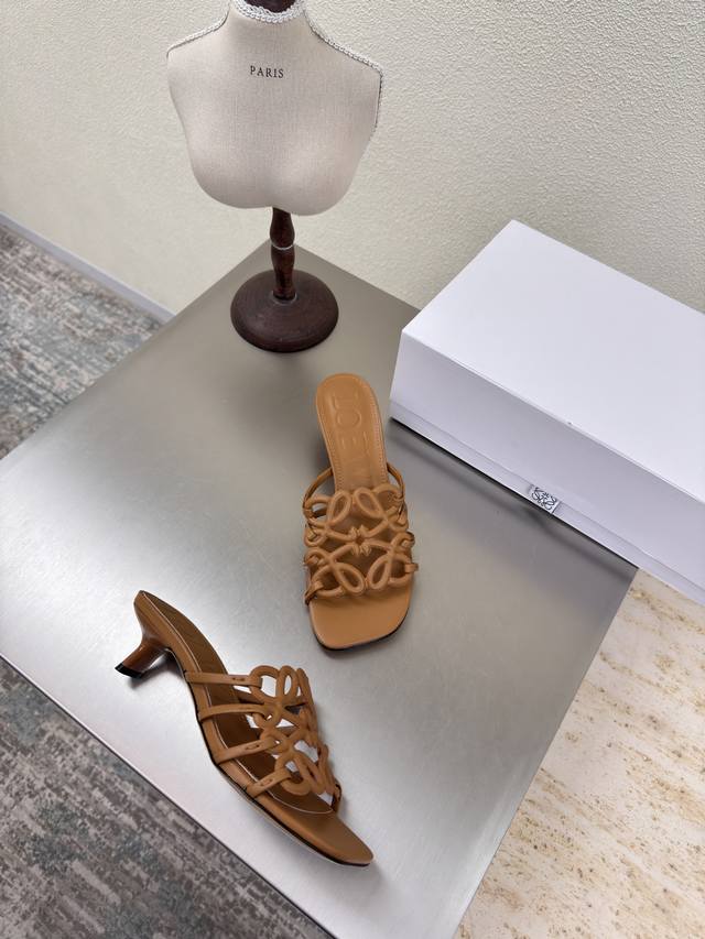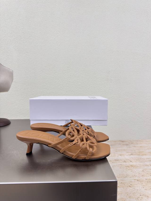 Loewe autumn super versatile cat heel closed toe mesh slippers