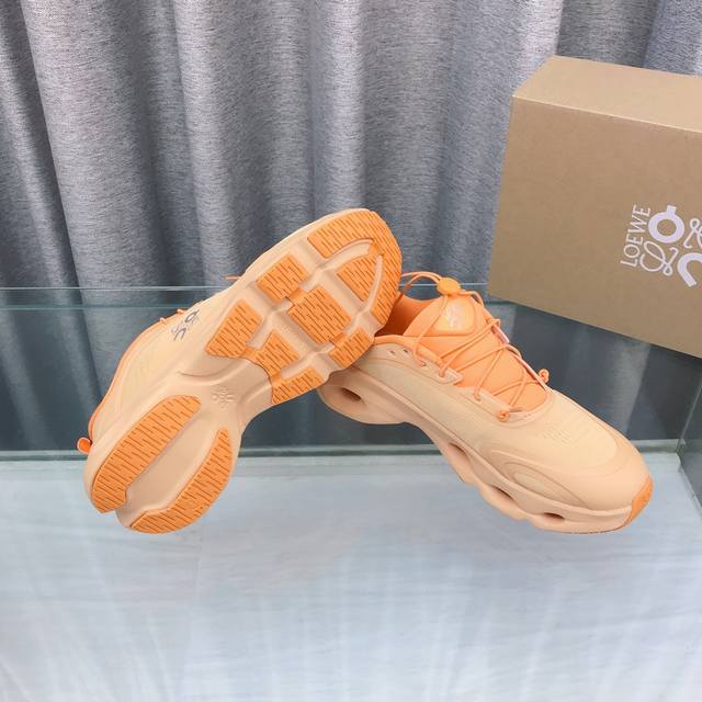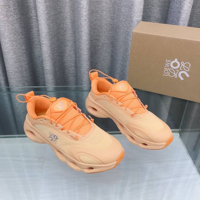 Loewe X On Collaboration Couple Running Shoes DDD The new Loewe X On collaboration series is stylish, created by the brand in partnership with the Swiss high-performance sports brand On. Designed for both urban and outdoor living, this series fully embodies sustainable technological quality. Made from recycled polyester and mesh, it features an exclusive rubber sole, the classic Loewe logo on the side, and full-coverage welt details. This collaboration combines On's professional technology with Loewe's exquisite craftsmanship in the production and design, specifically tailored for urban living and outdoor sports. DDD Sizes: 36-45 DDD