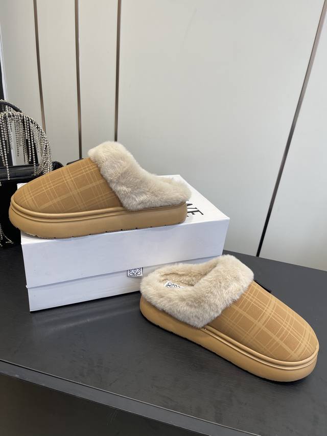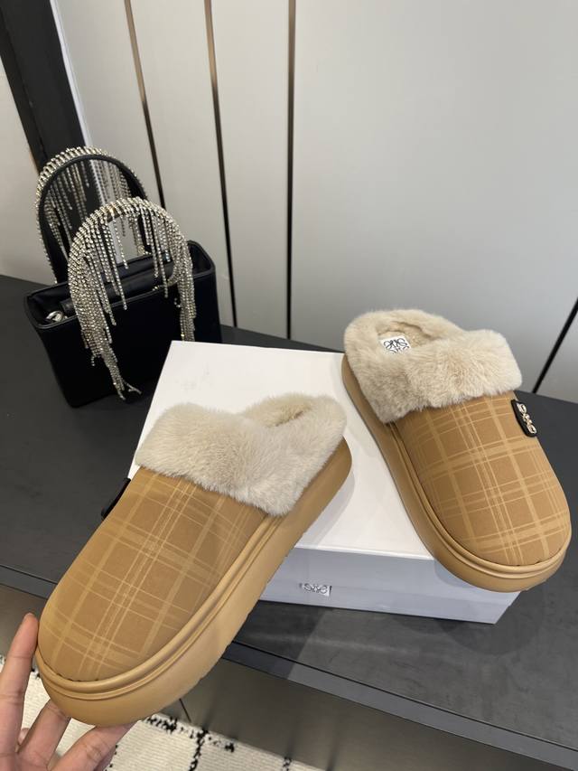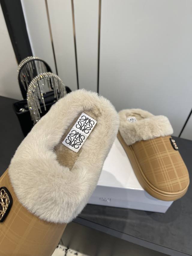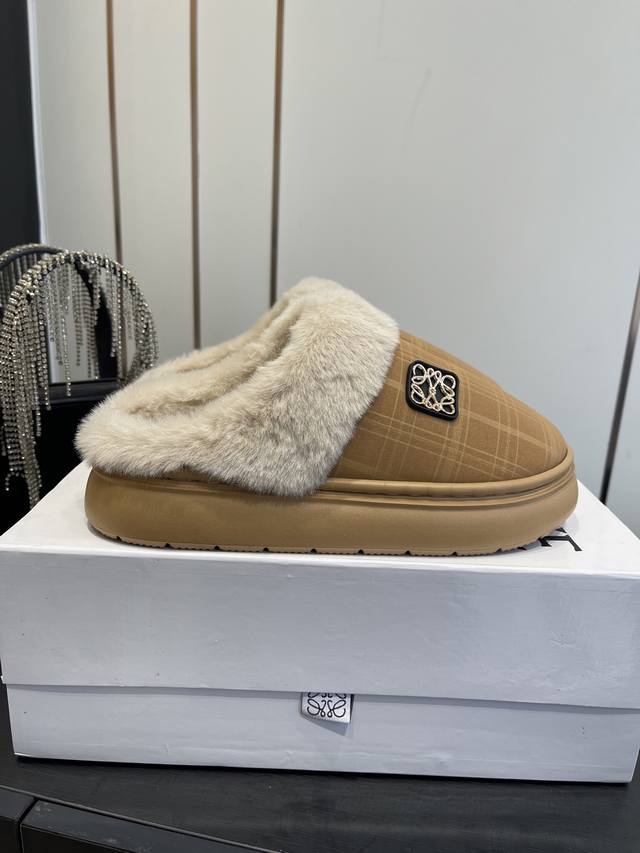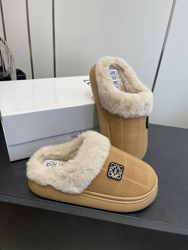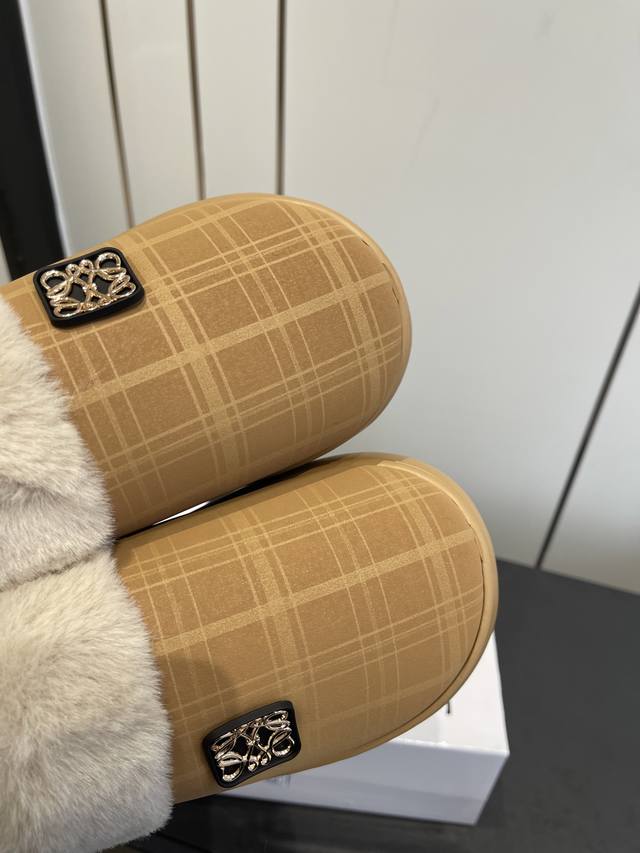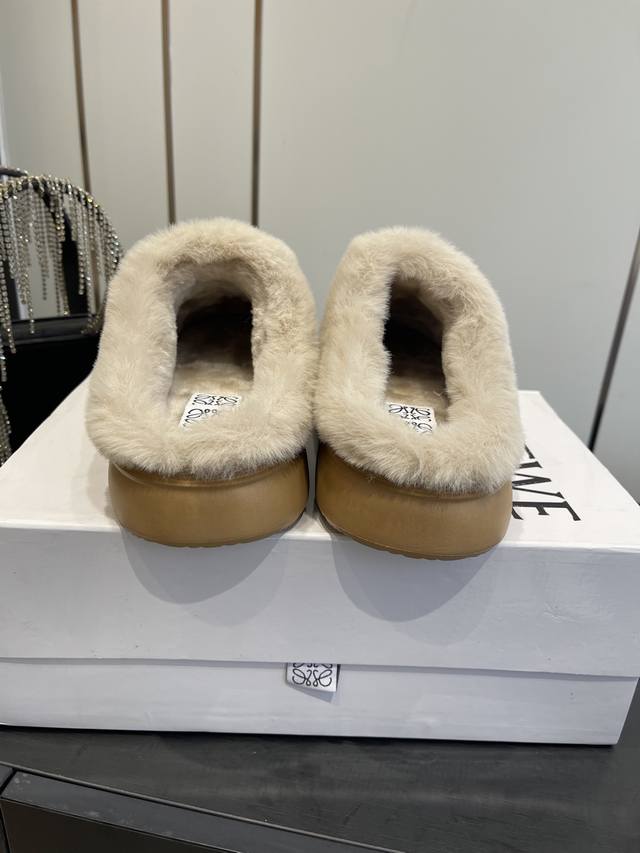 Loewe's hottest new autumn/winter style: super recognizable cute furry slippers. Simple yet stylish design, perfectly matching the original last, fashionable, comfortable, and easy to wear. Material: Original imported fabric. Insole: Eco-friendly woven plush. Outsole: Original outsole. Sizes: 35-40, 40 custom-made.