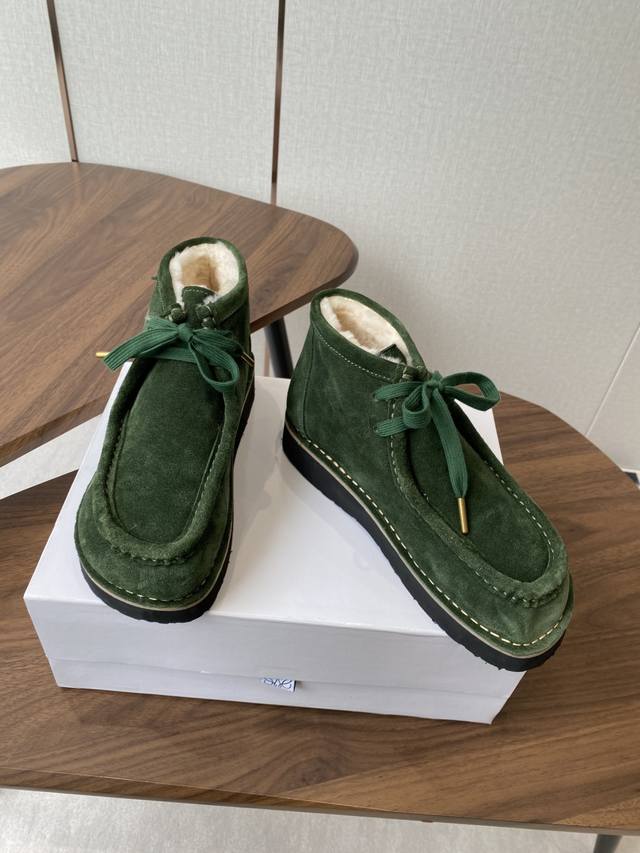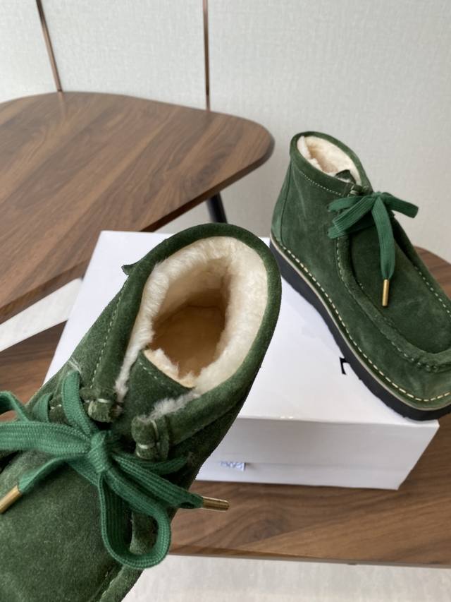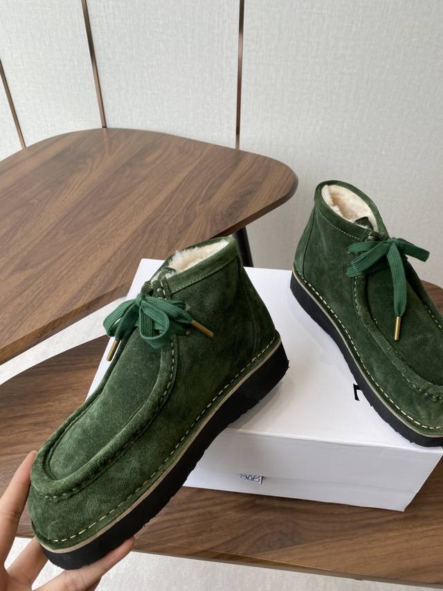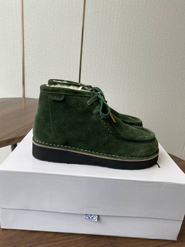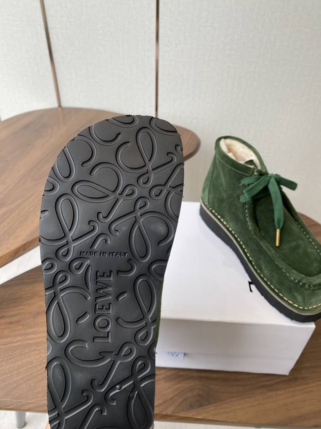 Loewe's new autumn/winter 25 wool ankle boots are here! The rounded toe is adorable, and the heel can be worn in two ways. It pairs perfectly with British slippers, and they're soft and incredibly comfortable. Fabric: Imported suede Lining: Wool Outsole: Ultra-light foam outsole. Sizes: 35-41, 40, 41. Made to order, no returns or exchanges.