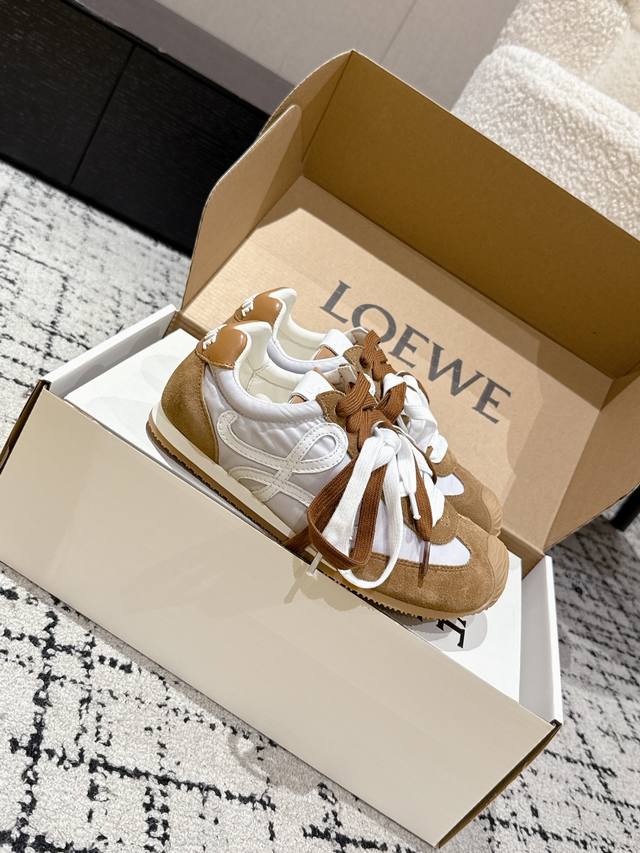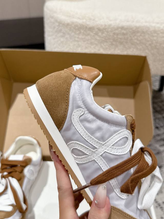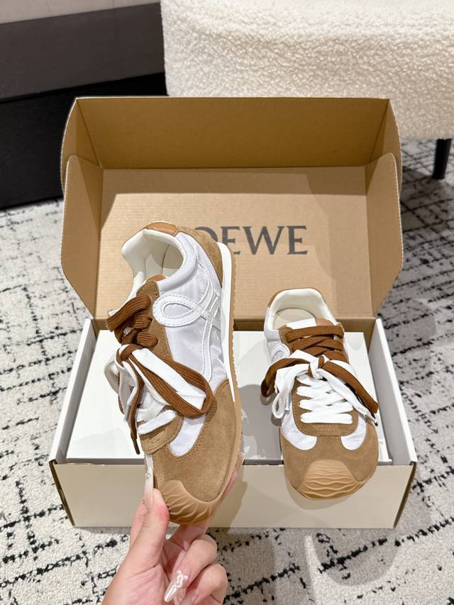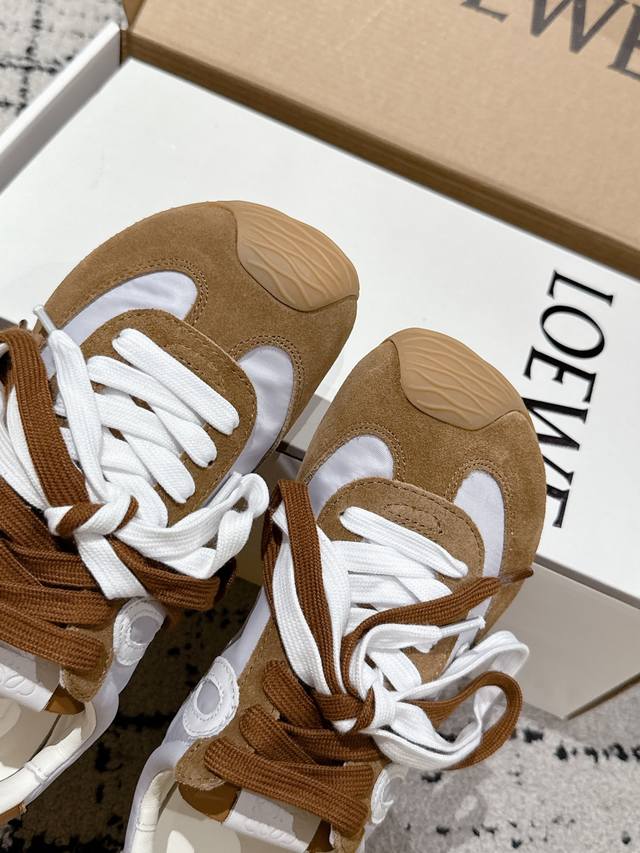 Loewe 25's latest runway model, the Ballet Runner 2.0, is a ballet-style casual sneaker.