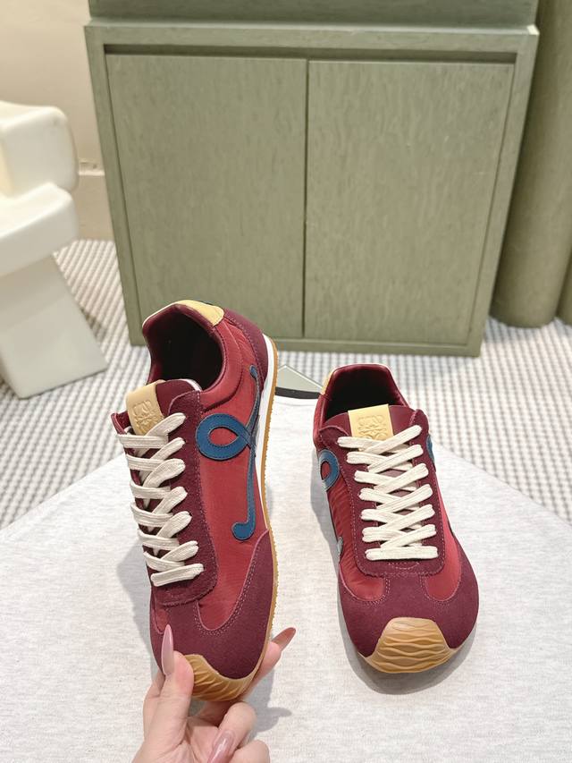 Retailer Grade DDD #Loewe New Big Toe Sneakers Ballet Runner 2.0 Ballet Forrest Gump Shoes. The toe design is more interesting, and the heel design is novel, soft, and comfortable. This Forrest Gump shoe will be rated as the most comfortable walking shoe of the year, making you feel like you're walking on flat ground! Sneakers recommended to wear true to size DDD The shoes have a simple and neat low-top design, with the brand logo's initials on the side. Most importantly, once you wear these shoes, you'll fall in love with them and won't want to choose any other athletic shoes. DDD Material Introduction: The upper is made of imported cow suede + calfskin + windbreaker fabric, which requires a high level of sewing skill. Original custom molded outsole! Comes with complete packaging DDD Comfortable, simple, and versatile walking Forrest Gump shoes, the design is inspired by ballet shoes and the footwear style of the 1970s, with a touch of retro! Original box packaging! DDD Size: 35-45M DDD