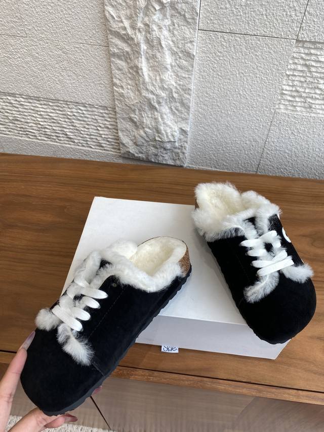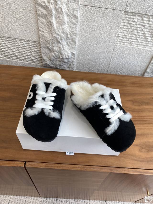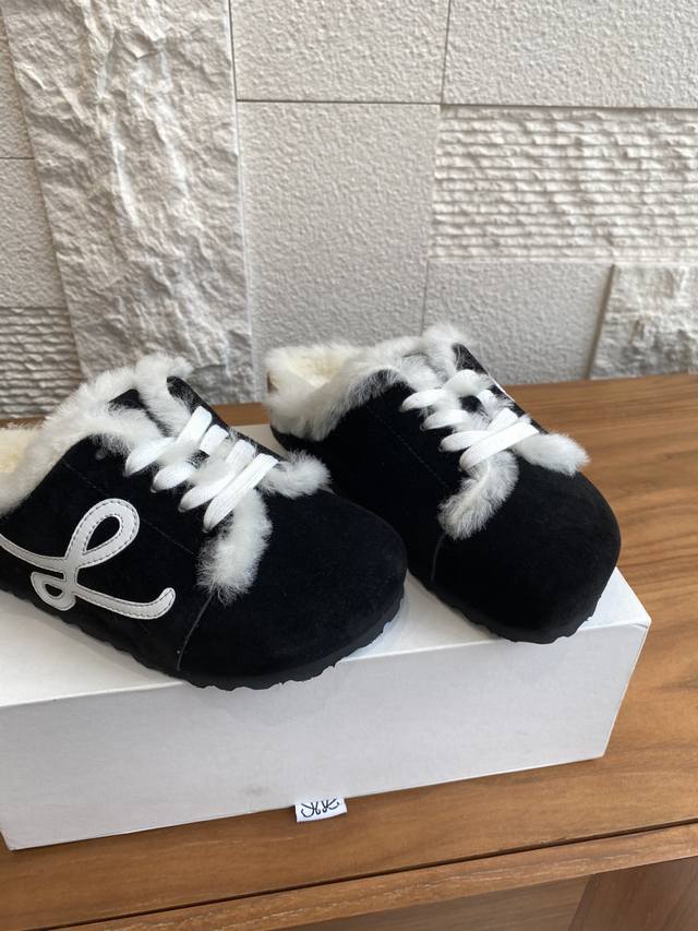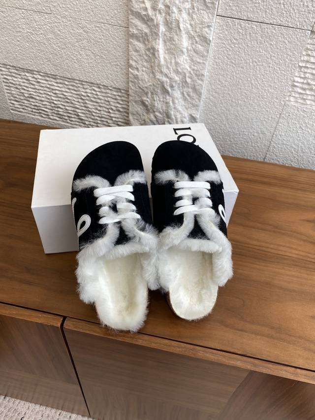Top Version: Loewe 25Ss Autumn/Winter New Couple Wool Slippers, Half-Slippers, Closed-Toe Slippers. Loewe 2025 Fashionable Genuine Leather Lace-up Wool Lined, Thick Sole, Non-Slip, Casual Outdoor Slippers. Original Imported Cowhide Suede Upper, Wool Lining, Three-Layer Pine Wood Outsole, Cork Latex with Ergonomic Design to Distribute Foot Pressure and Protect Ankles. Ladies! With these, you won't have to worry about everyday outfits. Material: Imported Suede; Lining: Imported Grade A Wool; Outsole: Original Mold Combination Outsole; Size: Women's 35-40 (40 is custom-made and non-refundable); Men's 39-45 (45 is custom-made and non-refundable).