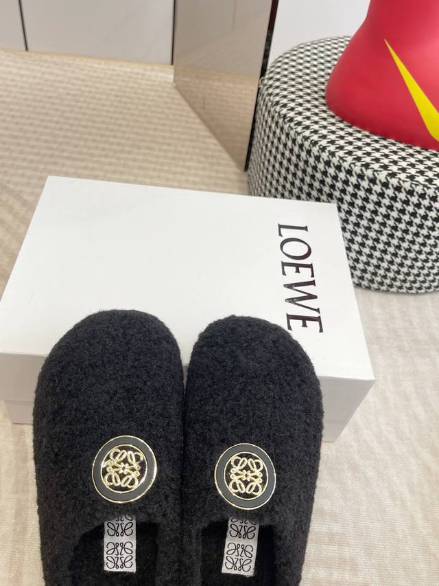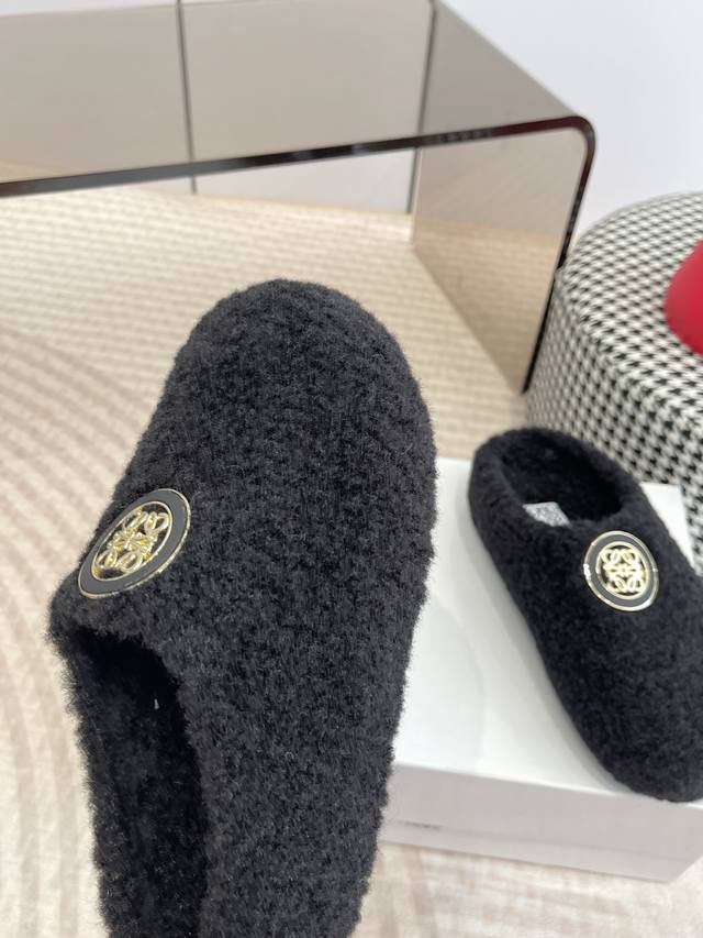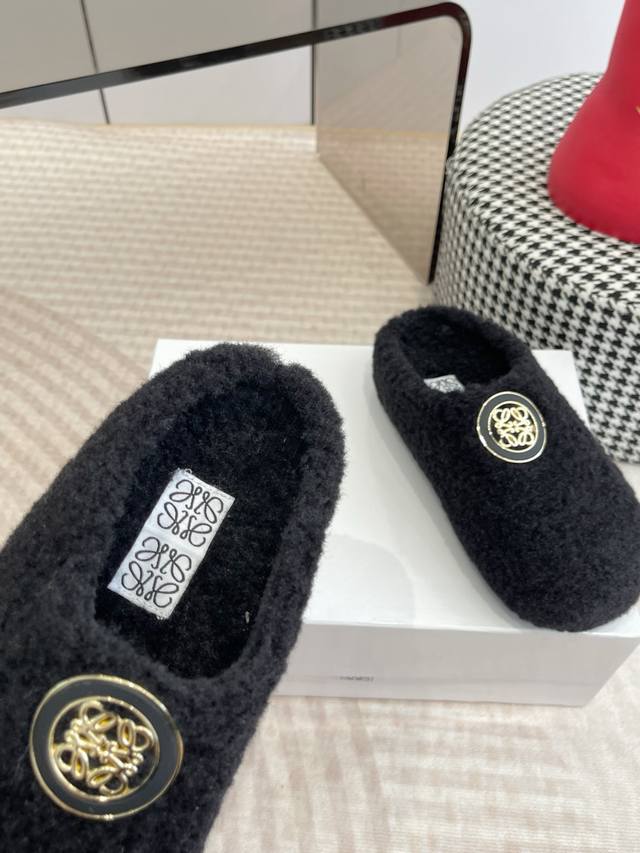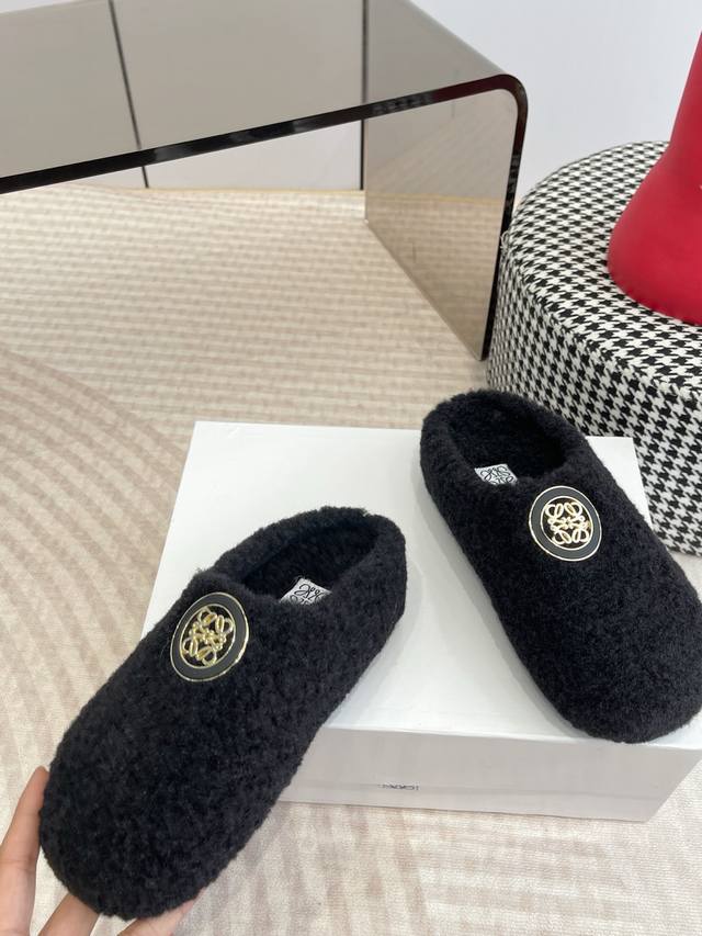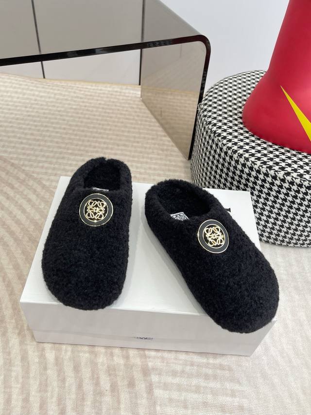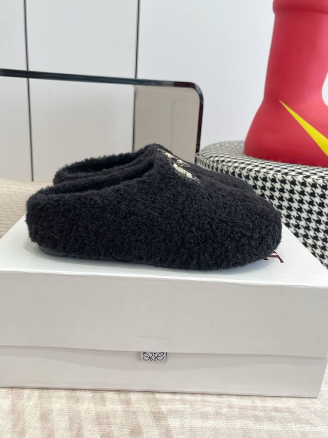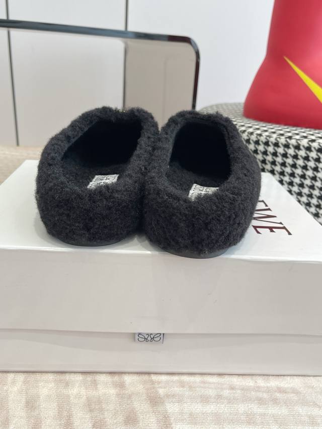 Top-tier factory version Loewe 25Ss Autumn New Style Fleece Slippers Ease Three-petal Toe Full Leather Wrapped Birken Shoes