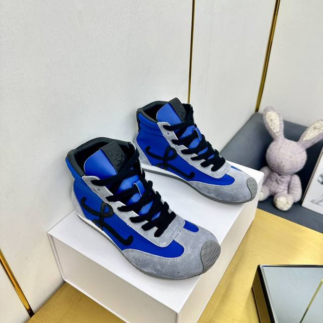 New gift box packaging. Shopping-only version of Loew*. Loewe is extremely friendly to women with wide feet. The comfort is really amazing, with a trendy and cool feel. The denim color scheme adds youthful vitality. The signature thick structure of the toe box makes it super comfortable even for me with big feet! It can be paired with anything!