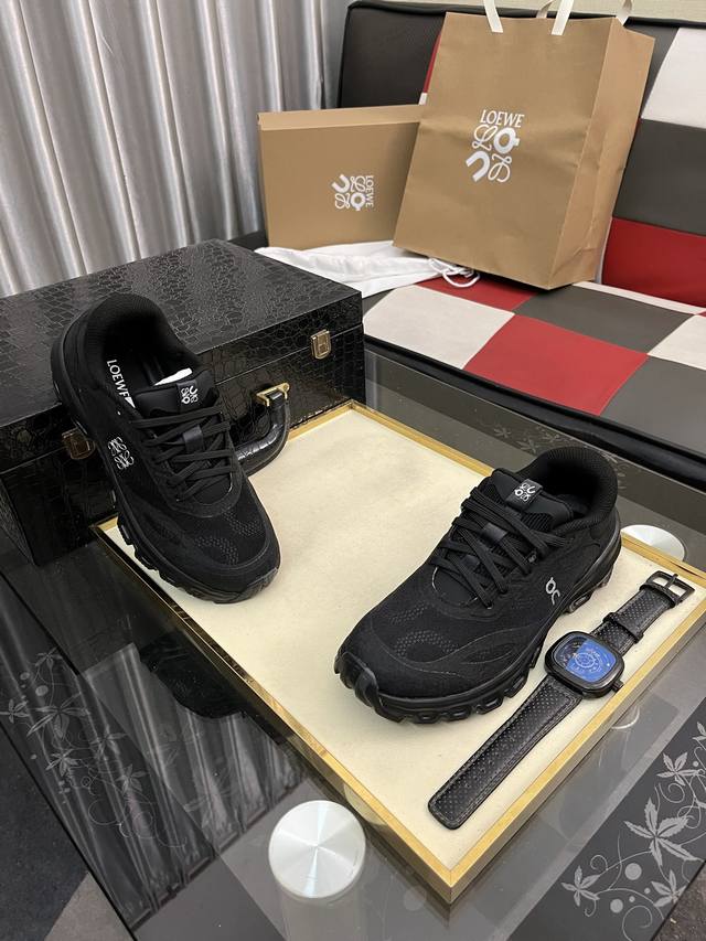Factory Price: On X Loewe New Six-Color Limited Edition Update! The 2025 On Run Loewe Collaboration Series Launches! The On Cioudtilt 2.0 running shoes for couples are a stylish collaboration between On and the Swiss high-performance sports brand On, designed for both urban and outdoor living, showcasing technological quality with a sustainable philosophy. Made from recycled polyester and mesh, featuring an exclusive sole, the classic Loewe logo on the side, and full-coverage stitching details. This collaboration combines On's professional technology with Loewe's exquisite craftsmanship, applied to the production and design, specifically crafted for urban life and outdoor sports. The shoes are predominantly white, with military green, orange, white, blue, black, and gray colorways