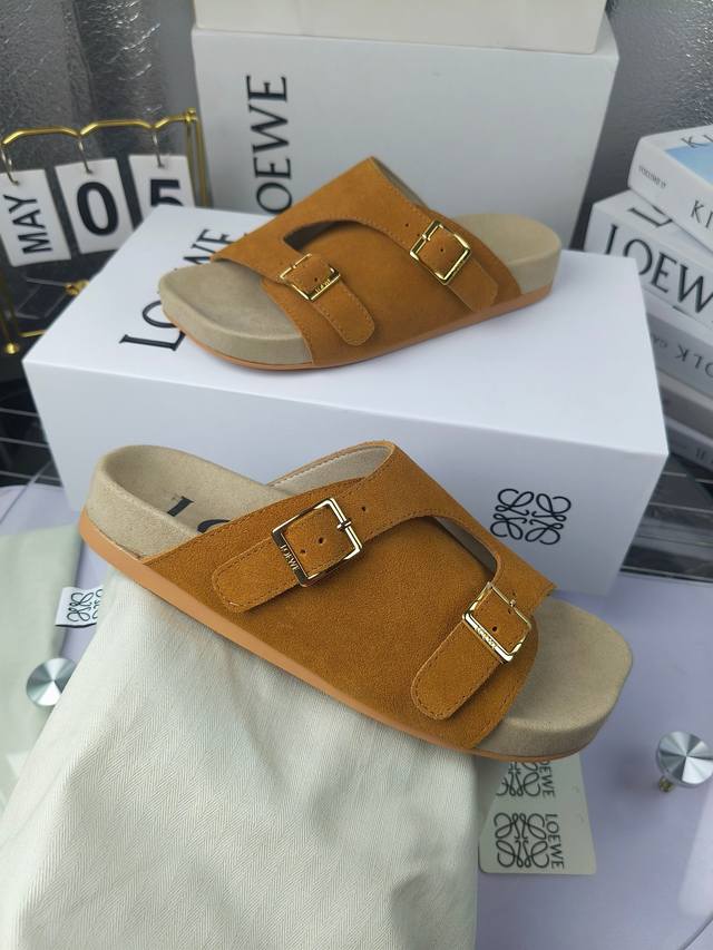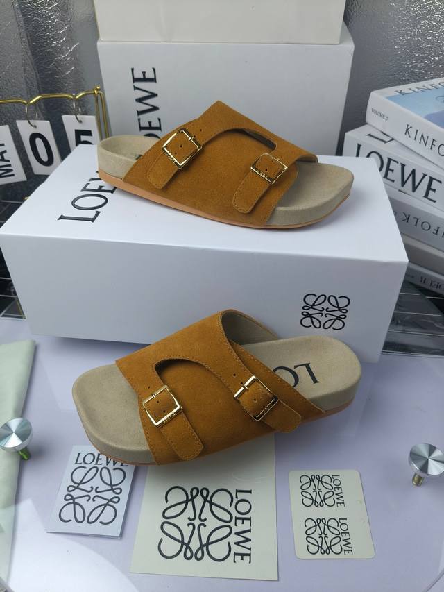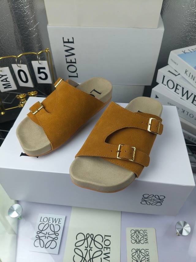 Loewe Birkenstock 2025 New Arrival! A hot new style with an original last, fashionable and unique, comfortable, and with amazing colors! Material: High-gloss cow suede; Lining: Sweat-wicking and breathable cow suede; Insole: Sweat-wicking and breathable cow suede; Outsole: Original non-slip outsole; Packaging: Original full packaging; Sizes: 35-41; 40.41 custom-made.