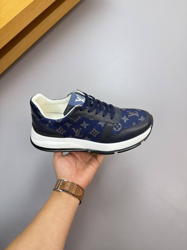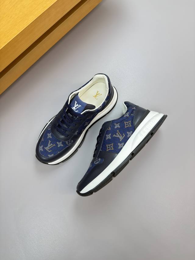Louis Vuitton - High-end quality original single casual sports shoes - Upper: Lychee-textured calfskin, brand totem denim canvas, tongue with stitched brand logo label - Lining: Water-dyed cowhide - Outsole: Ultra-lightweight TPU foam rubber; two-tone molded outsole - Super high quality control and exquisite workmanship: highlighting high-end luxury - Size: 39-44, 38, 45, custom orders available L0118