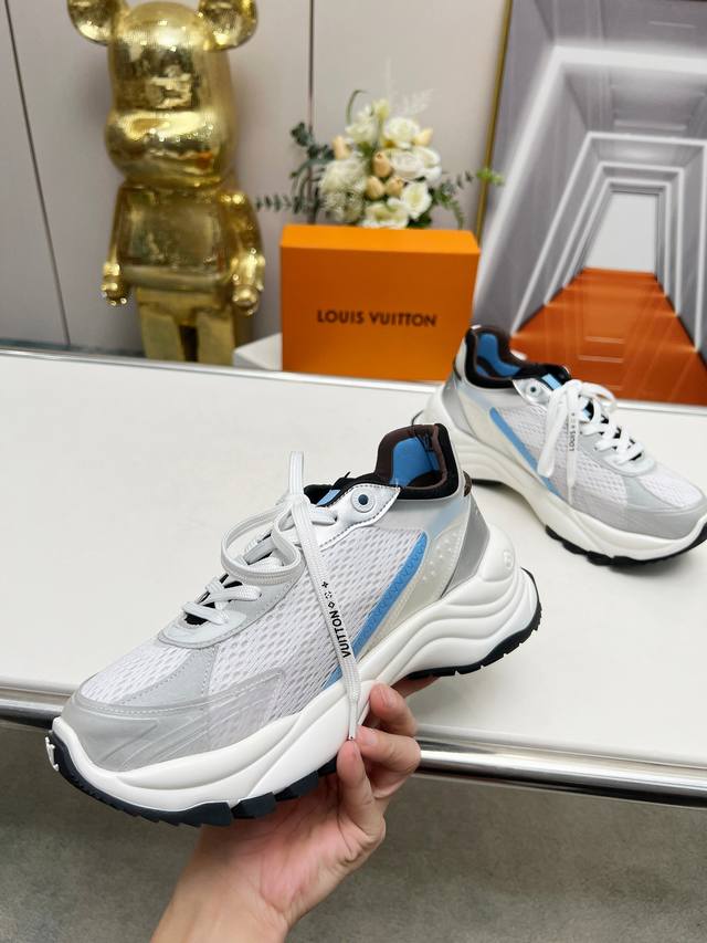 1:1 replica of the official Louis Vuitton Run 55 sneakers, made with a combination of mesh fabric, rubber, and adhesive materials, paired with cowhide leather for a sporty look. Iconic elements like the Monogram canvas heel strap convey the brand's spirit. Available in sizes 35-40-41 (custom orders accepted). Lasting available. Factory direct. Always in stock; welcome to upload pictures for best sales.