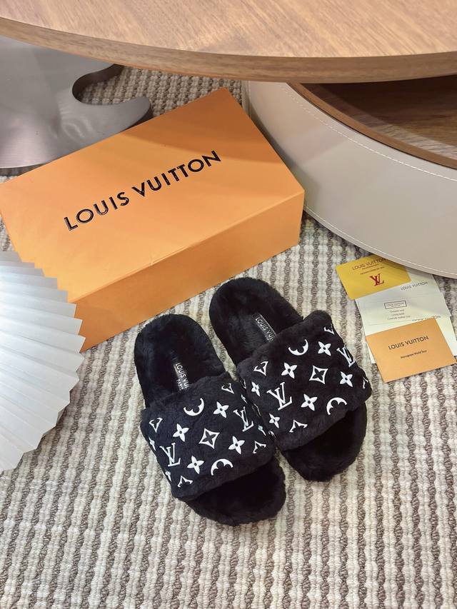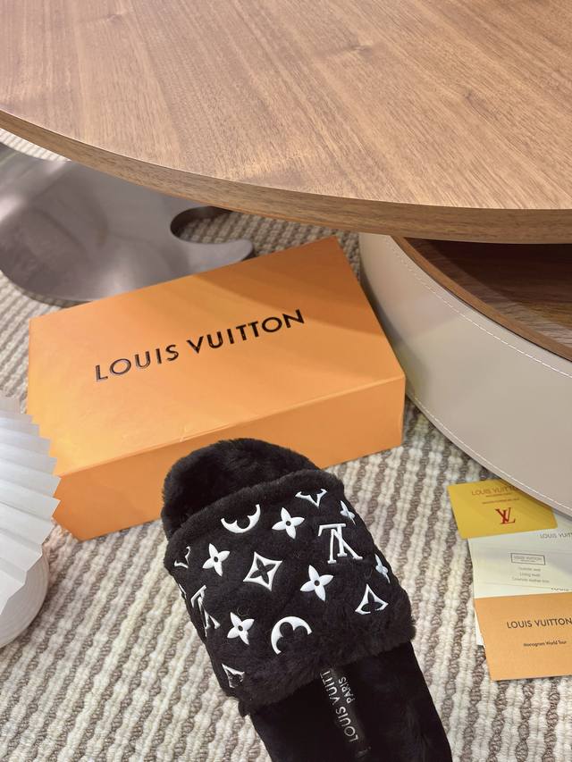 When LV's classic DNA meets the soft warmth of autumn and winter, these wool slippers are destined to become a must-have item for fashionistas this season. At first glance, you'll be captivated by their elegant design. The wallet element is incorporated into a stylish yet retro feel! It's as if you're wearing the elegance of sophisticated storage on your feet. The iconic Monogram pattern is subtly visible, appearing even more understated and high-end under the soft fleece. Every step exudes the brand's unique classic aura. The touch is irresistible