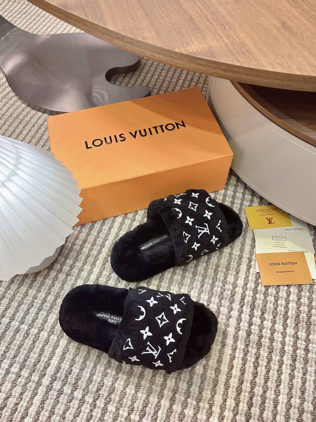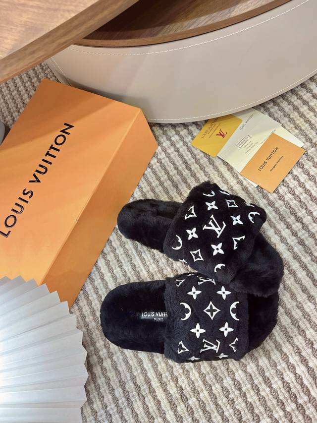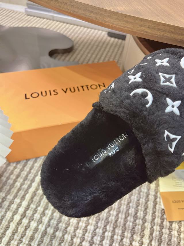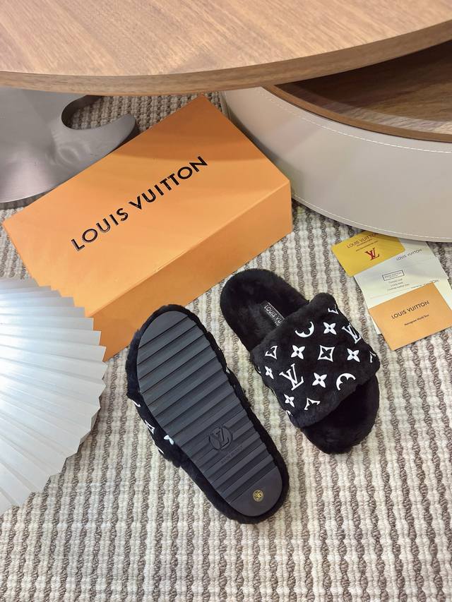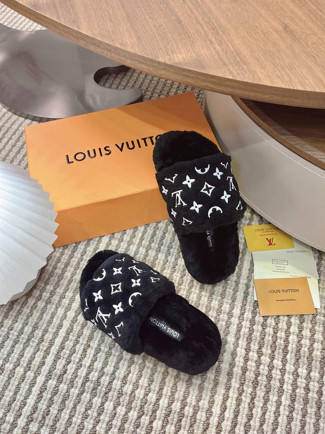 2025 Autumn/Winter New Louis Vuitton LV Wallet Wool Slip-on Lavish Platform Slip-on Sandals