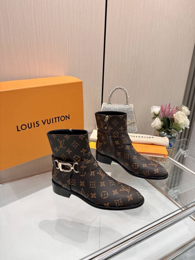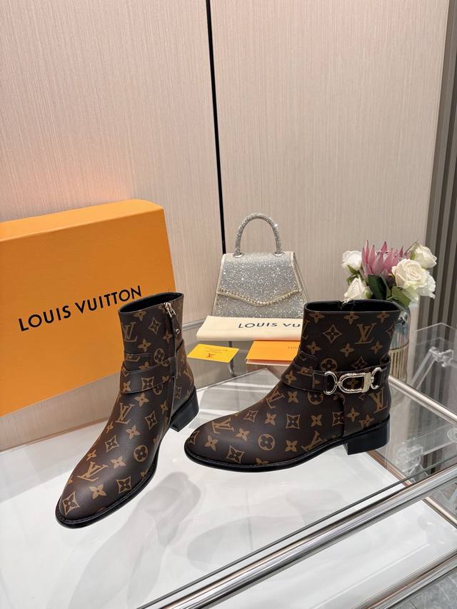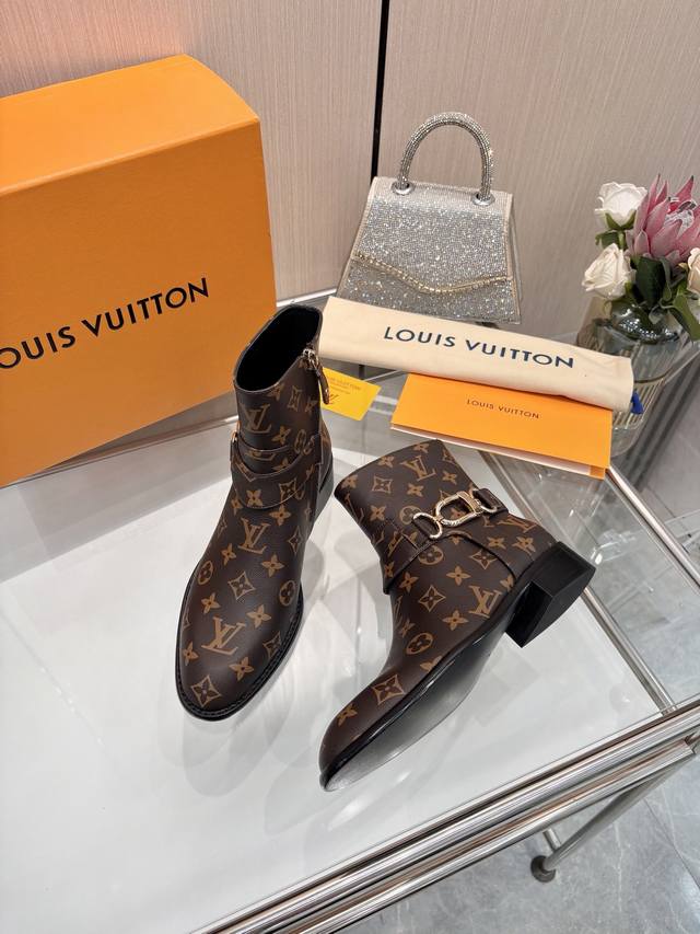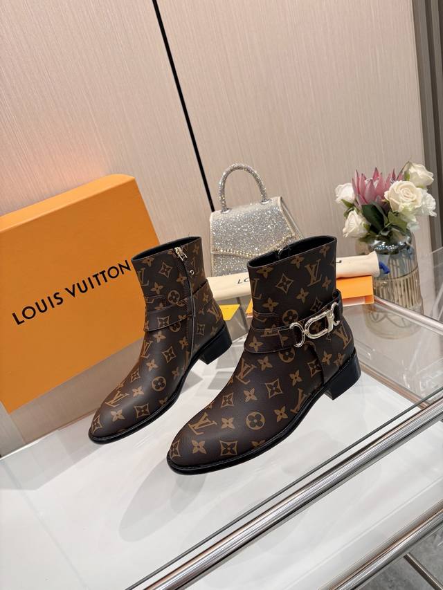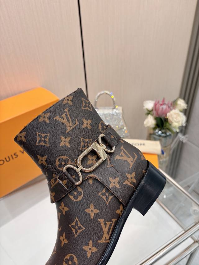 2025 Latest Louis Vuitton Autumn/Winter Chelsea 6-inch Martin Boots, Official Website Series Updated Simultaneously, Factory Wholesale Available. Features include: LV new large buckle design, molded outsole, comfortable and versatile fit, and a stylish look. Comfortable to walk in, original molded last, perfect 1:1 shape, high-end quality, and imported premium fabric for an exquisite feel! Material: Imported calfskin lychee-textured cowhide, Louis Vuitton monogram denim. Lining: High-quality soft sheepskin. Insole: Imported sheepskin. Custom-made A-grade high-density private mold outsole, luxurious packaging! 3cm molded outsole. Sizes: 35-40, 34, 40, 41 (custom orders are non-refundable).