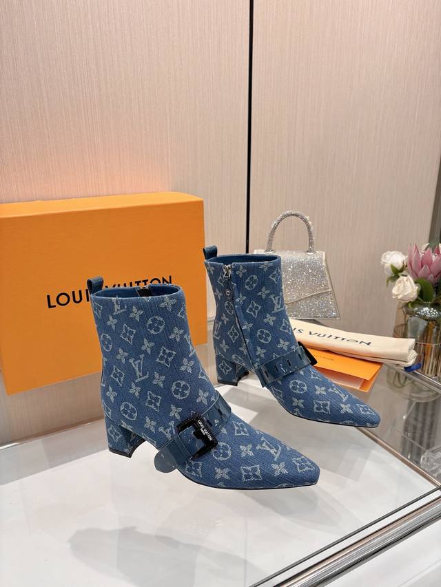 2025 Latest LV Autumn/Winter 6-inch Ankle Boots, Updated Simultaneously with Official Website Series, Factory Direct Wholesale: LV's new painted buckle design, novel and unique style, comfortable and versatile, exuding a heroic spirit. Comfortable to walk in, original molded last, perfect 1:1 shape, high-end quality, imported high-end fabric presents exquisite texture! Material: Imported split-edge calfskin, lychee-textured cowhide, LV's exclusive monogram denim. Lining: High-quality soft sheepskin. Insole: Imported sheepskin lining. Custom-made A-grade high-density private mold sole, luxurious packaging! Sizes: 35-40, 34, 40, 41 (Custom orders are non-refundable).