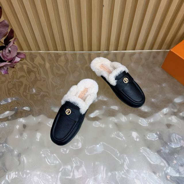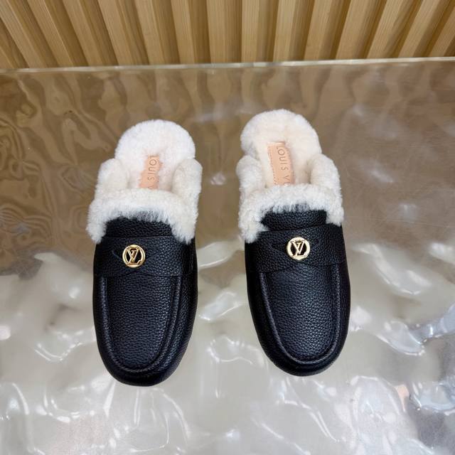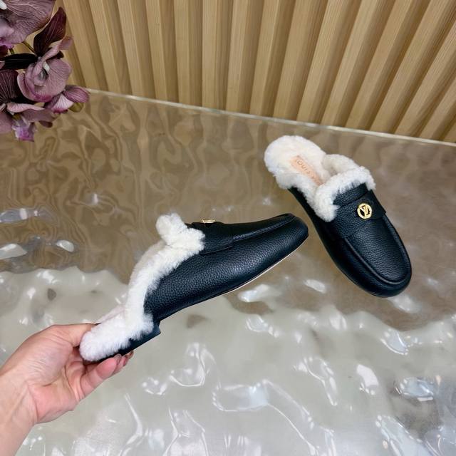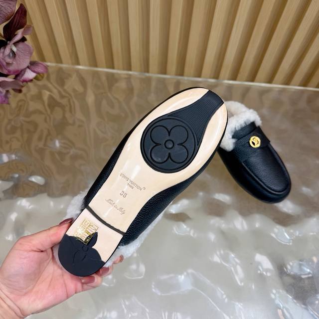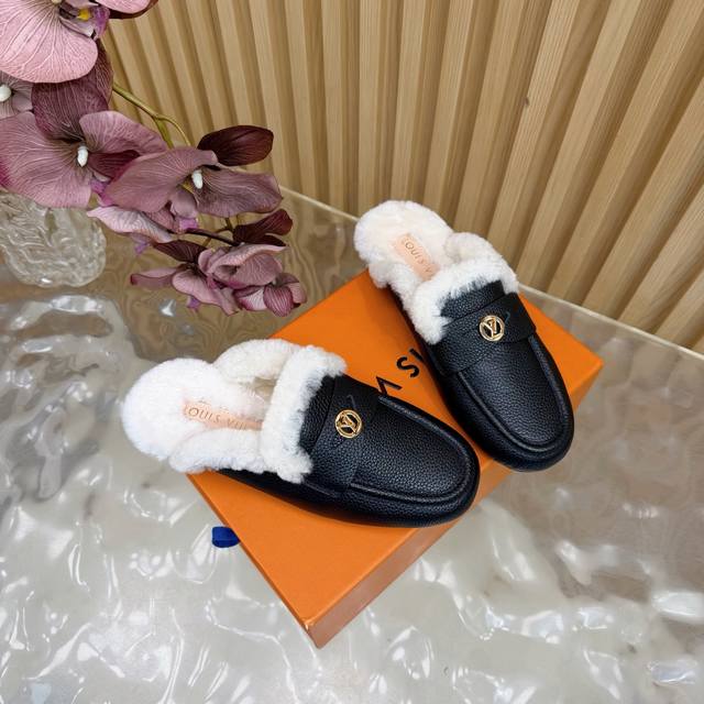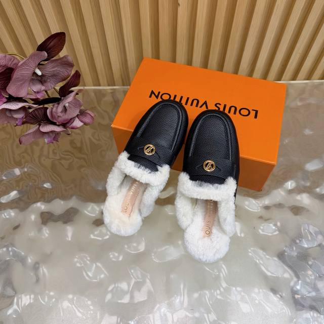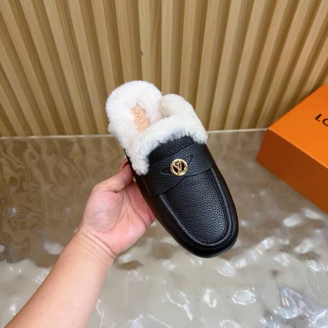 2025 New LV Mule Slippers (Synchronized with Boutique) The gold hardware engraved with the classic LV logo shines brightly, a visual code of the brand's century-long heritage and a perfect embodiment of understated luxury. The closed toe design combines elegance and practicality. The wool material offers both warmth and a soft touch, keeping feet warm from late autumn to early winter. The breathable leather base prevents stuffiness. These mule slippers are more than just a seasonal item; they represent Louis Vuitton's perfect balance of comfort and luxury. Enveloping everyday life in soft wool and showcasing style with the metal logo, they allow every step to find the perfect balance between relaxation and sophistication, making them a style companion for urban women all year round. DDD uses original custom-made lychee-patterned cowhide leather. The inner lining and toe caps are made of imported wool. It features an Italian imported genuine leather outsole. Sizes: 35-39, 40, 41, 42 (custom sizes available).