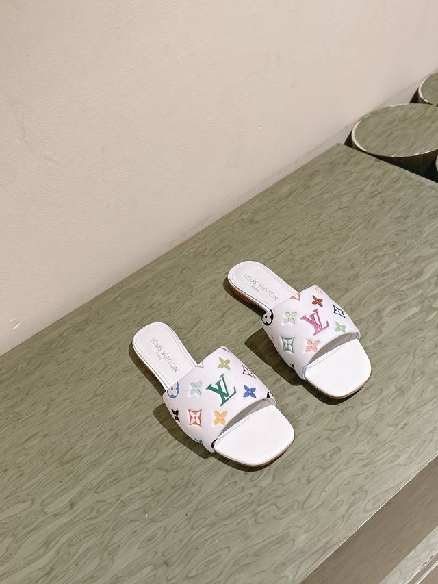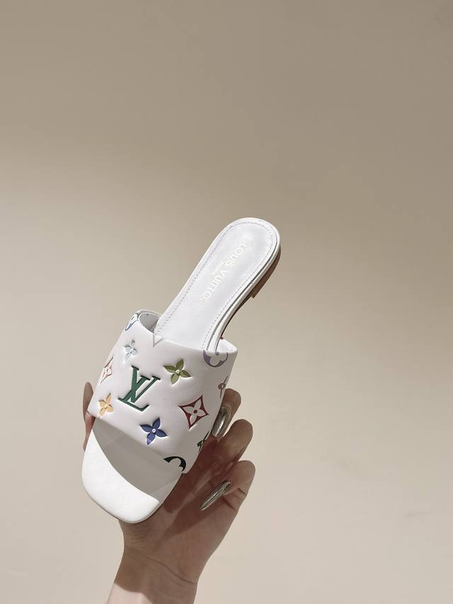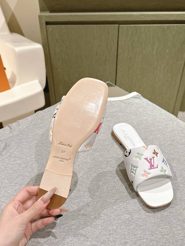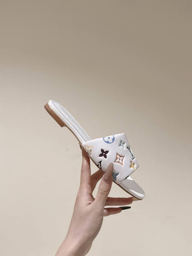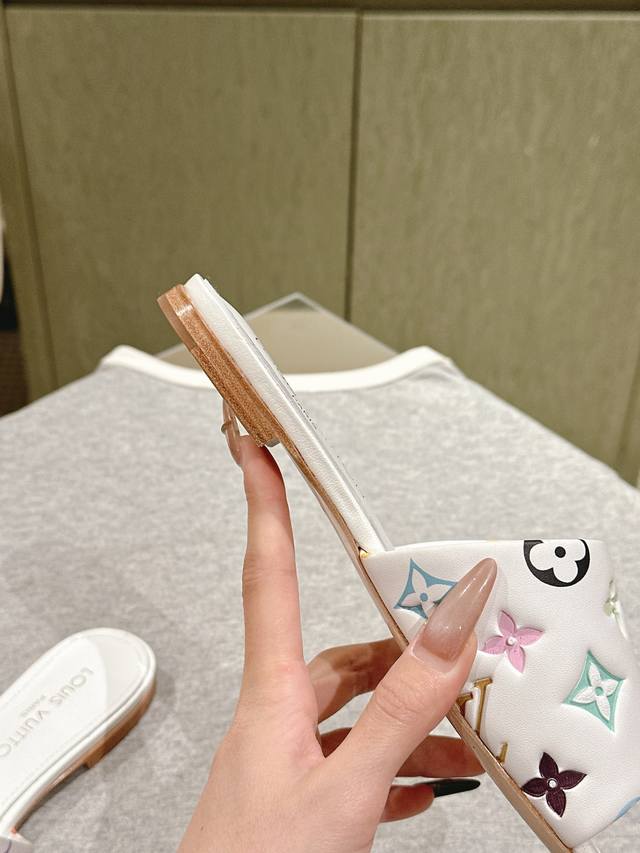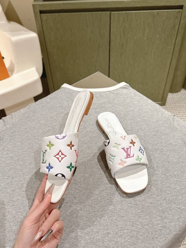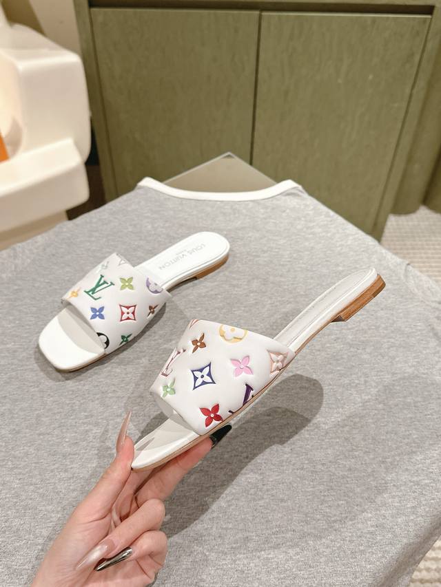 225 New arrival from LV! Lv spring/summer denim flat slippers. The denim colorway paired with brown leather is truly stunning! Sexy and comfortable, they've got the perfect emotional appeal of summer footwear. The sandals are also incredibly cute and stylish!