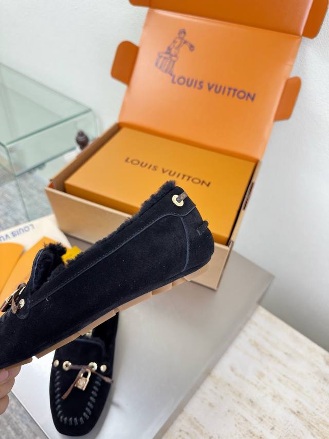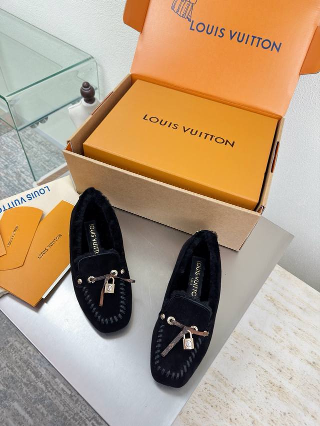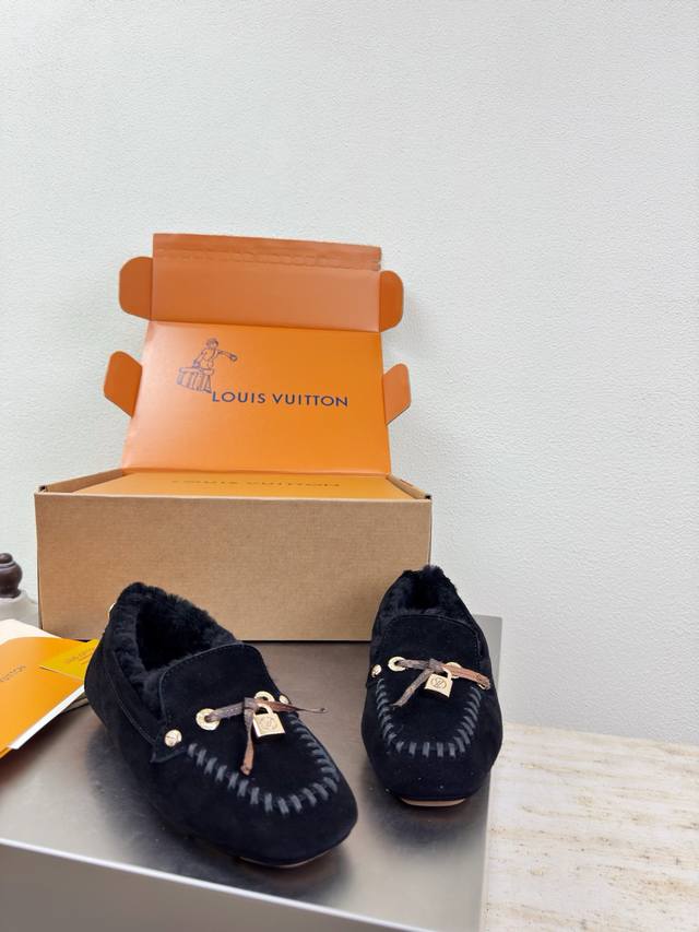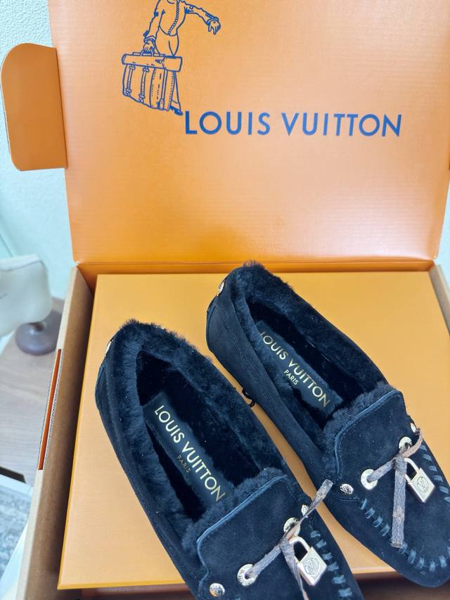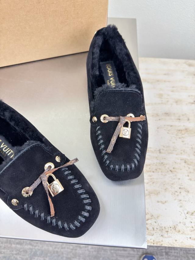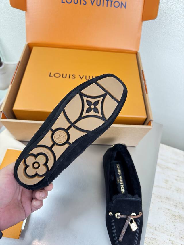 25 Wool-lined flat shoes with printed logo, hand-stitched, high-gloss cow suede, imported lamb wool slippers. High-quality, flawless packaging. Available in 3 colorways. Black logo. Lv (LV) strives to provide creators and young players with something amazing and desirable. Three new colorways are being released again, and the actual products have been fully revealed and are expected to be released soon! Material: Imported lamb wool, high-quality and flawless. Sole: Original TPU outsole. Sizes: 35, 36, 37, 38, 39, 40, 41 .