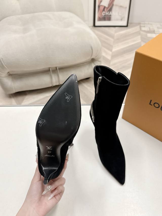 25Ss Early Autumn New Louis Vuitton Lv Legacy Ankle Boots Pointed Toe High Heeled Short Boots with Side Zipper and Monogram Belt