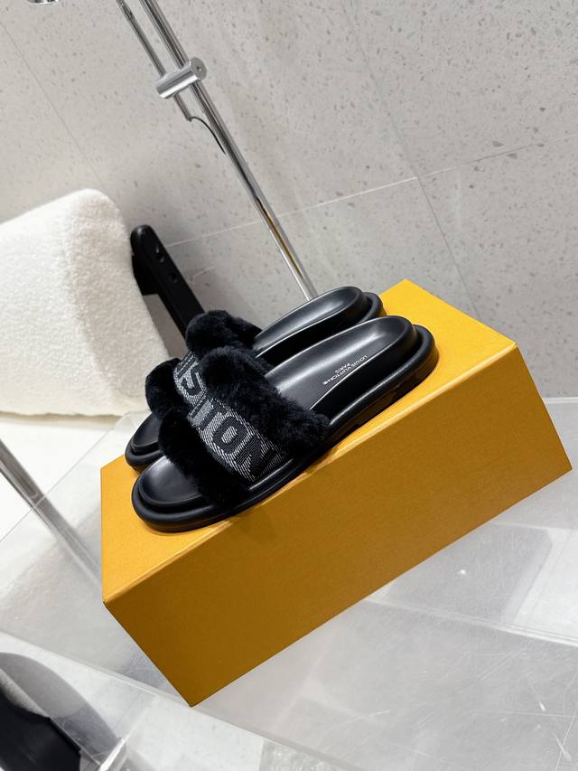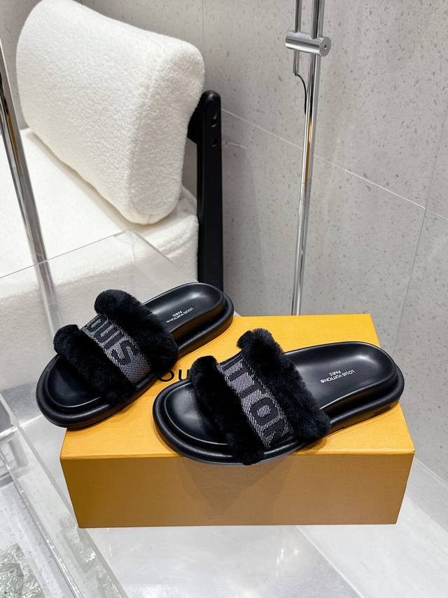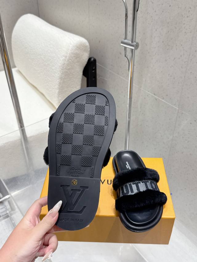 25Ss Lv new Louis Vuitton thick-soled casual fur slippers