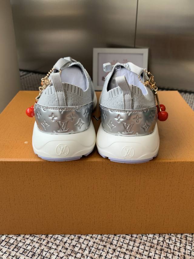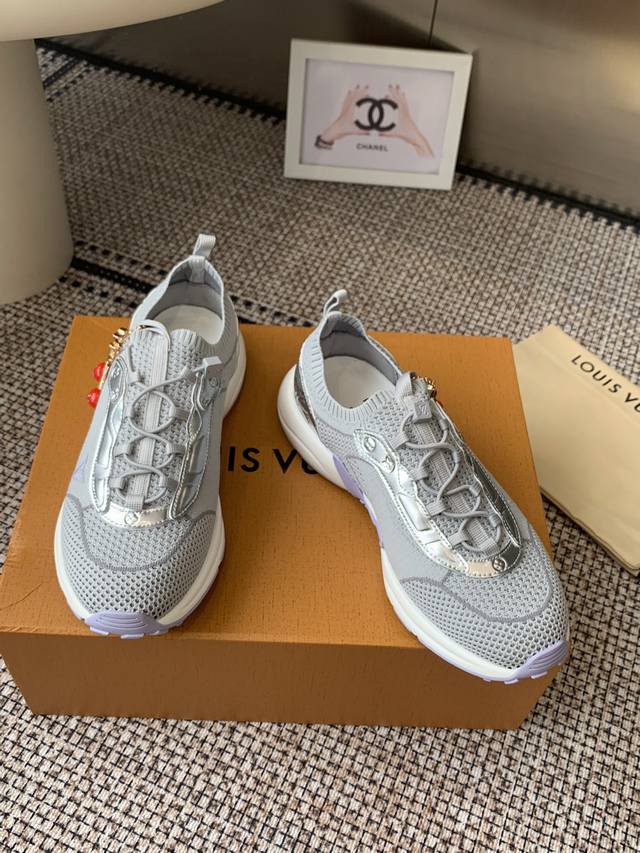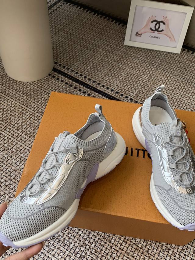 Accessories 60 Lv Louis Vuitton 25Ss new sneaker with socks. This sporty, streamlined design is inspired by running shoes. The exquisite upper is made from a variety of technical materials, including mesh and metallic synthetic leather, and features many iconic details. The lightweight EVA is designed for bounce and comfort, and the mesh design ensures breathability. The EVA material is not heavy at all, making walking tireless. The excellent foot feel and high-tech feel make it a perfect match with ripped jeans and a white T-shirt. You can wear this pair of shoes seven days a week. It is definitely worth the purchase.