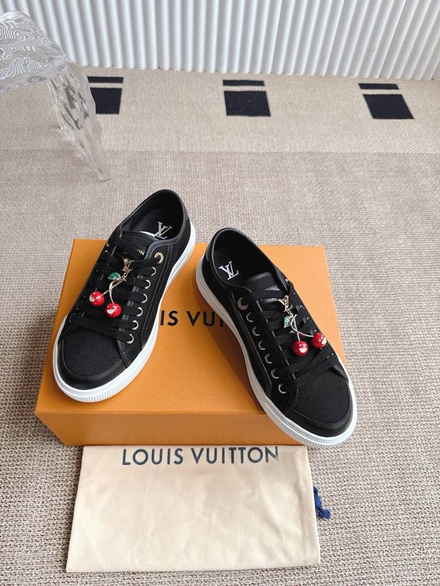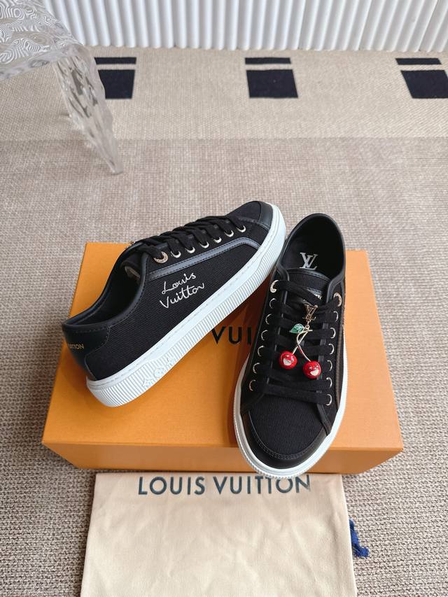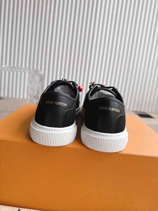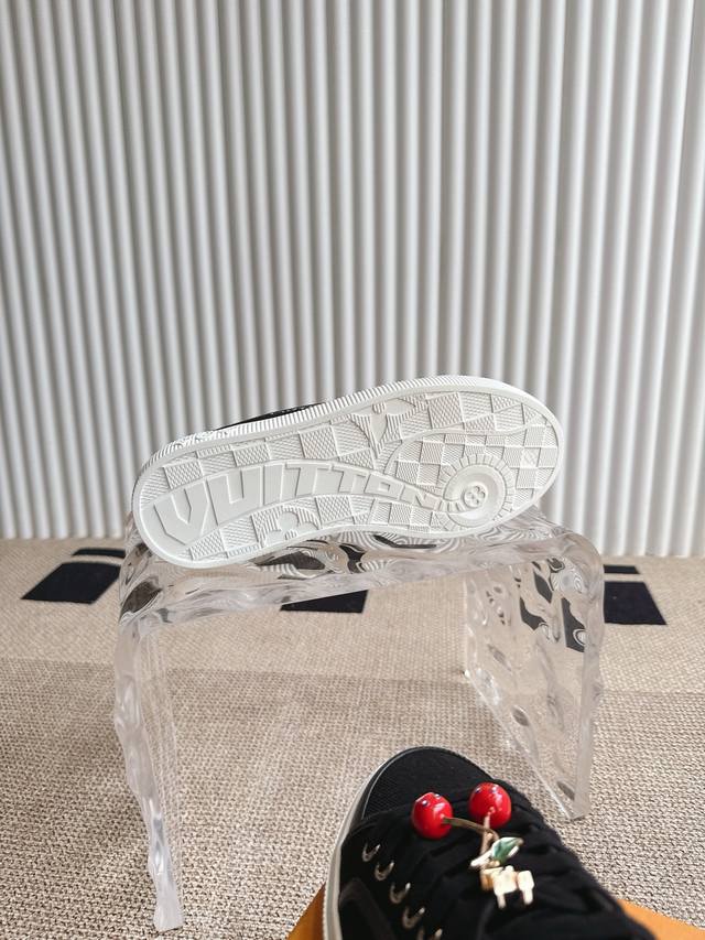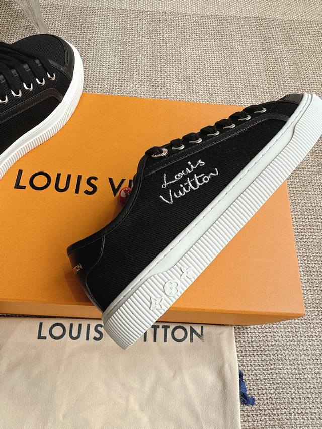 Lv Lagoon sneakers are crafted from Monogram denim, giving a classic design a vintage feel. The Louis Vuitton logo is featured on the leather trim, while the inscribed eyelets, trim, and laces highlight the refined details. A rubber outsole embellished with Monogram flowers completes the look.