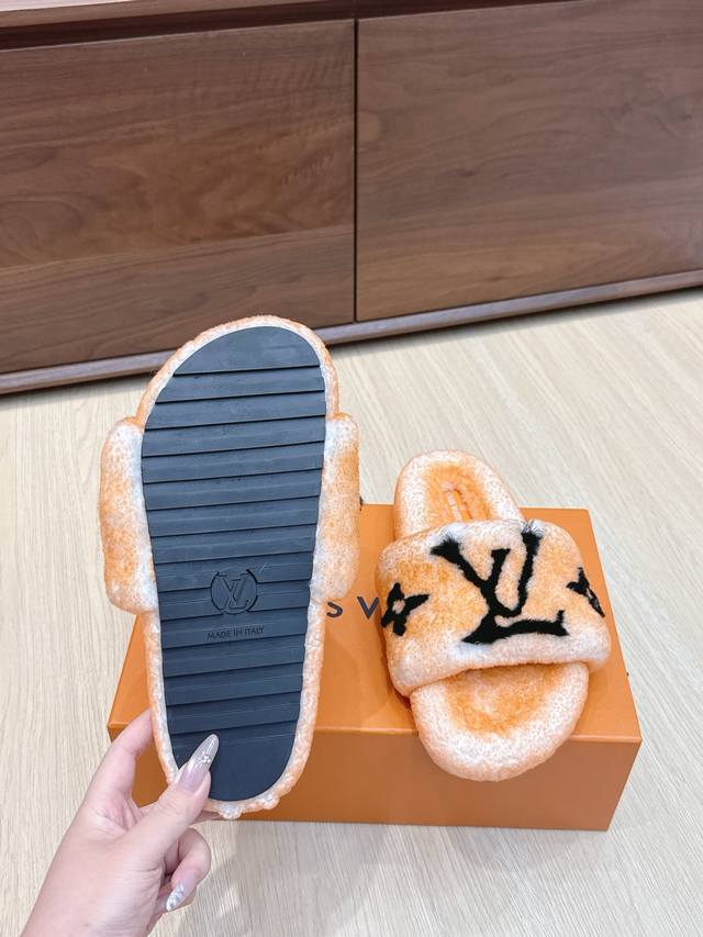 Agent-grade Louis Vuitton LV Donkey Teddy Lambswool Slippers