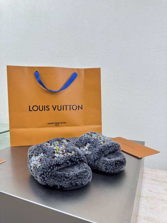 Black Lambswool Diamond Hand-stitched Logo Lv Crafts