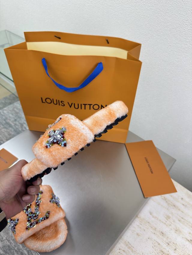 Orange Lambswool Diamond Hand-stitched Logo Lv Crafts
