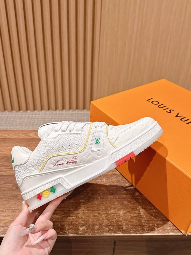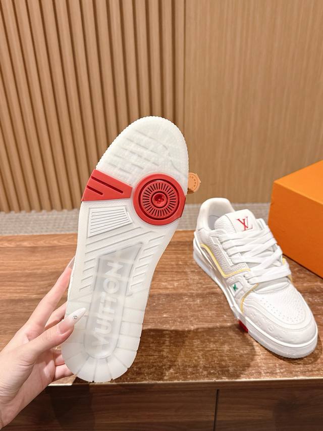 Couple Size# Louis Vuitton Casual Sneakers Skateboard Shoes Classic Return, You Won't Want to Miss Any of Them! The entire shoe is covered with small Lvmonogram logos. There are many classic Lv Trainer colorways, and while this season's designs are similar in shape, there are still many highlights in the details. Each pair takes 7 hours to sew. The tongue, sides, and heel are decorated with the Lv lettering, and the sides are decorated with the Vuitton logo. The outsole is decorated with Monogram flowers. Speaking of craftsmanship, the side embossing uses a high-temperature hydraulic one-piece technology, resulting in a strong three-dimensional effect. The logo on the toe is aligned with the upper and tongue on a central axis. The outsole stitching also uses the same process as the original, with the last two stitches being double-stitched to prevent fraying. These subtle differences reflect the quality. Size: Women's sizes 35-39, 40 (custom orders are non-refundable); Men's sizes 39-46, 45, 46 (custom orders are non-refundable).